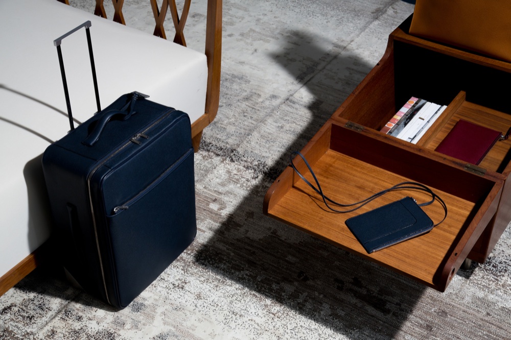 In un’immaginaria stanza allestita da Nina Yashar, fondatrice della galleria Nilufar di Milano, Valextra presenta la sua nuova collezione di borse e valigie per la prossima estate che come origami si piegano e dispiegano. Le borse da viaggio hanno forma poliedrica, gli zainie le borse da lavoro a due manici hanno orli a taglio vivo dipinti di nero che compongono una V al centro dei comparti esterni per trasformare il monogramma in un dettaglio integrato nella concezione architettonica della struttura. Infine i trolley di forma lineare e compatta, minimali monocromi, curati nei minimi dettagli.