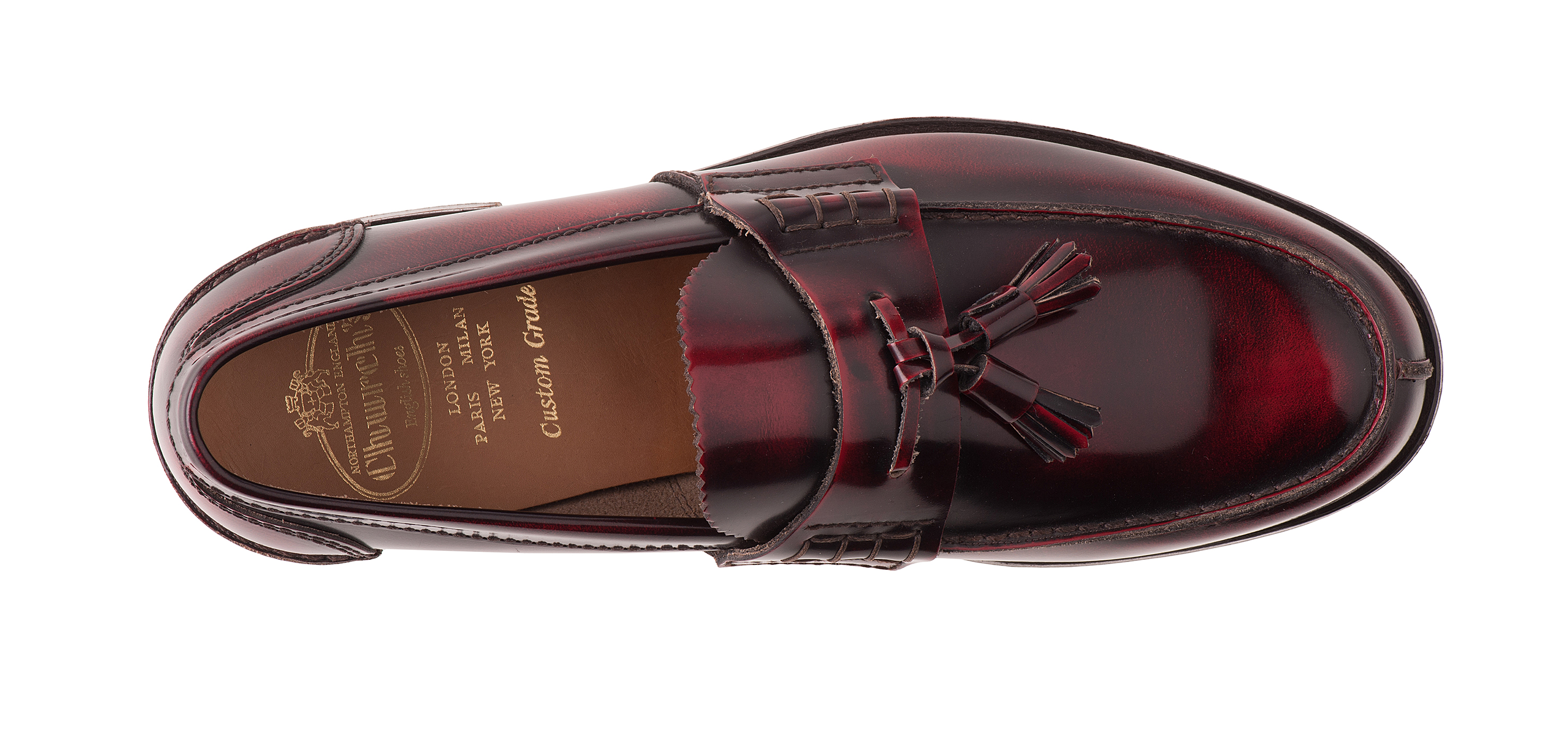 Modello Tiverton di Church’s in pelle di vitello spazzolata con nappine. Euro 355
