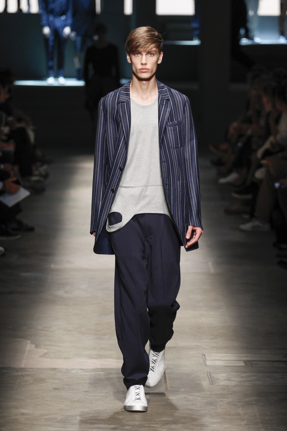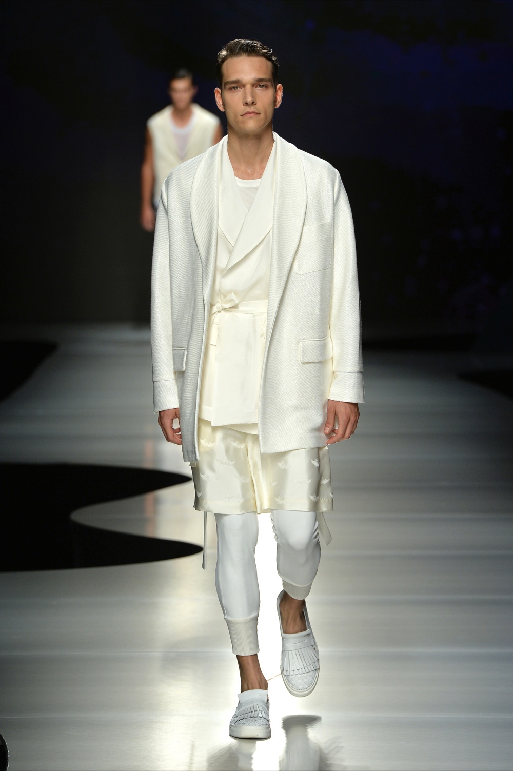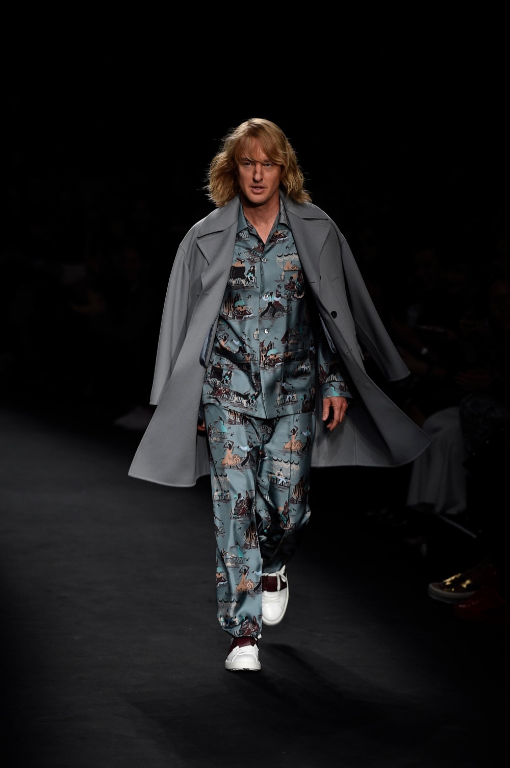 Le regole dell’abito maschile cambiano e la parola più utilizzata per descrivere le collezione primaverili è comfort. Con nonchlance Maria Grazia Chiuri e Pierpaolo Piccioli, il duo creativo di Valentino, infilano un pijama in seta con stampa continents a Owen Wilson e lo spingono in passerella, al fianco del socio in Zoolander Ben Stiller, sotto al naso di celebrity appollaiate in front row- che tra l’altro in un secondo netto sono schizzate in piedi su tacchi traballanti per una satnding ovation degna di concerto-.