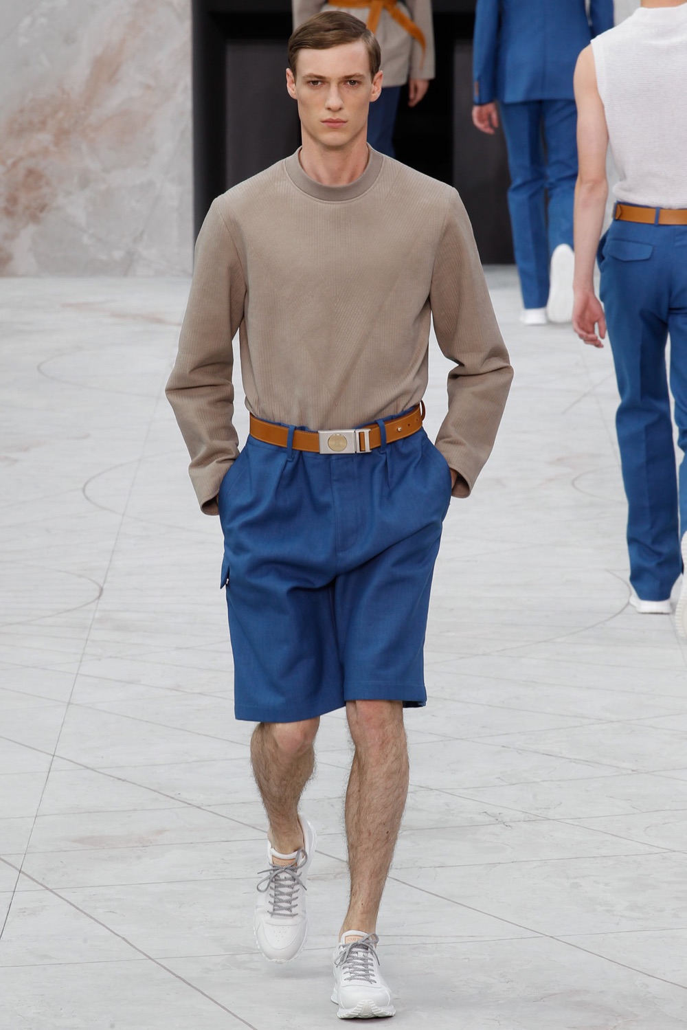 Tradotto su tessuti tecnici e traspiranti accoppiati ad altri naturalmente leggeri, come lino e chambray, la vestibilità giusta è rilassata, mai over. La palette cromatica predilige le sempre eleganti tonalità neutre, verdi militari e blu spenti, come quelli di Lemaire che, abbinati alla camicia ton sur ton, ricordano un elegante uniforme da lavoro. Da abbinare a maglieria morbida, cardigan e maglie dagli educati scolli tondi, formali senza essere seriosi, i bermuda si concedono stampe solo se micro, a motivi geometrici, come le micro righe di MSGM, oppure floreali, declinate in nuance delicate, come proposte sulla passerella di Hermès.