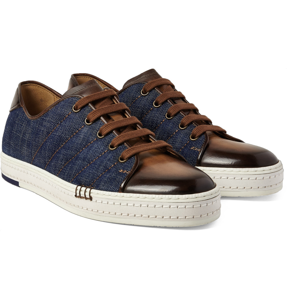 Anche il denim di Cos ha linee pulite ed essenziali, tratto distintivo del brand anche per la collezione estiva. Dal giubbino con colletto camicia, chiusura zip e elastico in vita, al pantalone tailored per un look effetto contrasto. Tra i capispalla ecco il nuovo piumino senza maniche DOver di Moncler realizzato con un denim inedito, impermeabile e ultralight da indossare anche sopra al blazer, e i giubbino in dark-blue jeans di Bottega Veneta con allacciatura a bottoni, profilo a contrasto e taschina sul petto: elegante anche la sera. Infine Berluti con la sua Playfield sneaker in pelle di Venezia rivisitata con tomaia in denim e impunture che richiamano le nuance della punta, perfette per un casual friday.