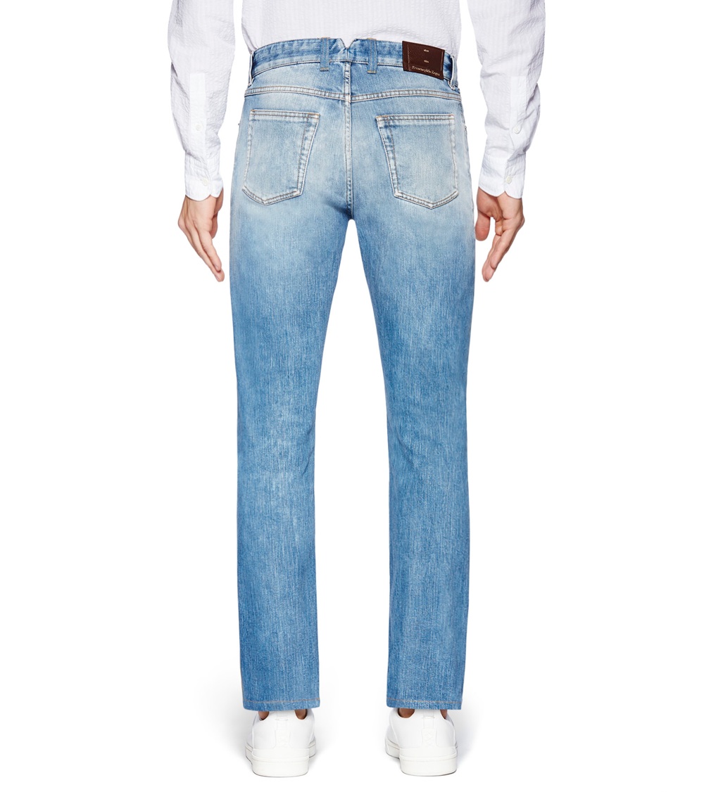 Anche il denim di Diesel risorge con un nuovo tocco che armonizza tradizione del brand e spirito più audace. Il nuovo modello si chiama Khiro. Ha finitura a cimosa, gamba dirtta, ampia, risvolto alla caviglia e un particolare filato che permette la traspirazione durante le giornate più calde. Data la forma cut e il cavallo basso il Khiro si porta con camicia bianca slim fit, rigorosamente infilata nel jeans, e sneaker in tela o stringata e pull girocollo per un look più formale. Tra le novità della primavera in casa Zegna c’è invece il Luxury Denim, una selezione di tessuti made in Italy realizzati appositamente per la maison. È qui che l’artigianalità trova la sua massima arte. La costruzione sartoriale con una cintura costruita a misura sulla vita, l’abbottonatura raffinata, lo sporne foderato, le asole in tessuto elevano il denim a capo di lusso. Le tasche hanno una nuova forma, oltre ad una rifinitura speciale in pelle che rende il jeans estremamente maschile, mentre l’etichetta è realizzata in pelle con incisione dorata che identifica il modello.