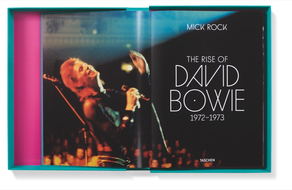 Una serie di scatti passati alla storia, insieme ad immagini mai viste, che ora Taschen pubblica nel libro The Rise of David Bowie. 1972-73 e mette in mostra nella sua Taschen Gallery a Los Angeles (9 Settembre – 11 Ottobre). Il volume è disponibile inoltre in una edizione a tiratura limitata (1972 copie) co-firmate da Bowie e da Rock.