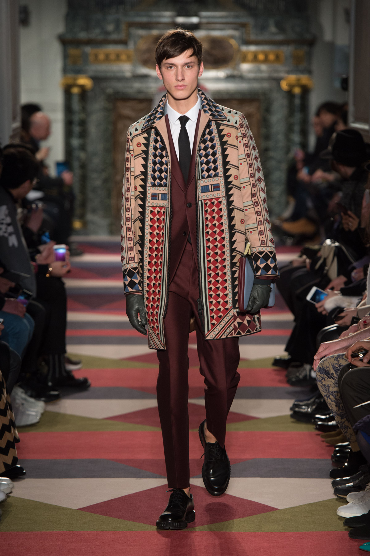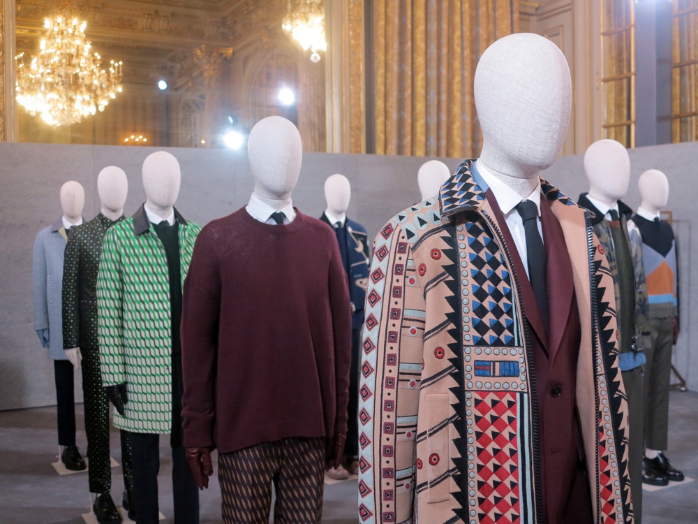 Diversamente hanno fatto i designer di Valentino che hanno collaborato con il pittore australiano Esther Stewart, traslando le sue composizioni geometriche su tutta la collezione, dai parka slim-fit ai maglioni ad intarsio. Maria Grazia Chiuri e Pierpaolo Piccioli sono partiti dai Ballets Russes, l’esperimento di creatività totale che, negli anni Venti del Novecento, vide Djagilev collaborare con la crème degli artisti del tempo, per realizzare capi grafici e con un’estetica di retaggio Mod che è sempre cara al duo.