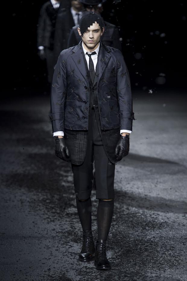 Tra dandy sempre più ambigui, vedi anche i gentleman ottocenteschi con frac e foulard al collo che hanno sfilato da Berluti, e rockers anni Settanta (perché Saint Laurent non poteva che concludere la kermesse parigina con la sua schitarrata rock campione di incassi ad ogni stagione), quello che forse dovrebbe far riflettere è che di uomini non ha più senso parlare. Ma di stile in senso assoluto. Non sarà quindi un caso che anche Thom Browne abbia inscenato un funerale vittoriano con tanto di velette e collezione total black? Attendiamo fiduciosi una rinascita primaverile.