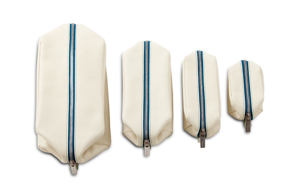 Se il rigido bianco domina la scena, come in un sogno Achrome di Piero Manzoni, rivitalizzato da righe con colori a contrasto o da un particolare motivo pixel, le forme sono comode. Come per la sacca con tracolla regolabile, o il set di beauty case in versione matrioska per poter organizzare gli acessori delle vacanze in perfetti kit da cabina aereo.