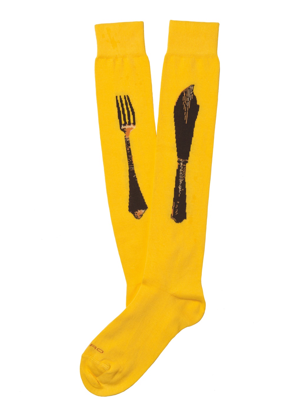 Il giallo banana di Boglioli tinteggia il doppiopetto Dover tinto in filo in pura seta grezza irlandese, da portare anche con un denim scuro, magari con effetto used. Ai piedi le sbneaker di Jil Sander che ricordano le scarpe da tennis degli Anni Settanta, in pelle lucida, con punta tonda, suola in gomma e lacci in cotone ton sur ton, e a tracolla, a sdrammatizzare un completo grigio da ufficio, ecco la borsa a tracolla di Burberry in pelle color giallo zafferano con stampa ispirata alle copertine di libri d’epoca.