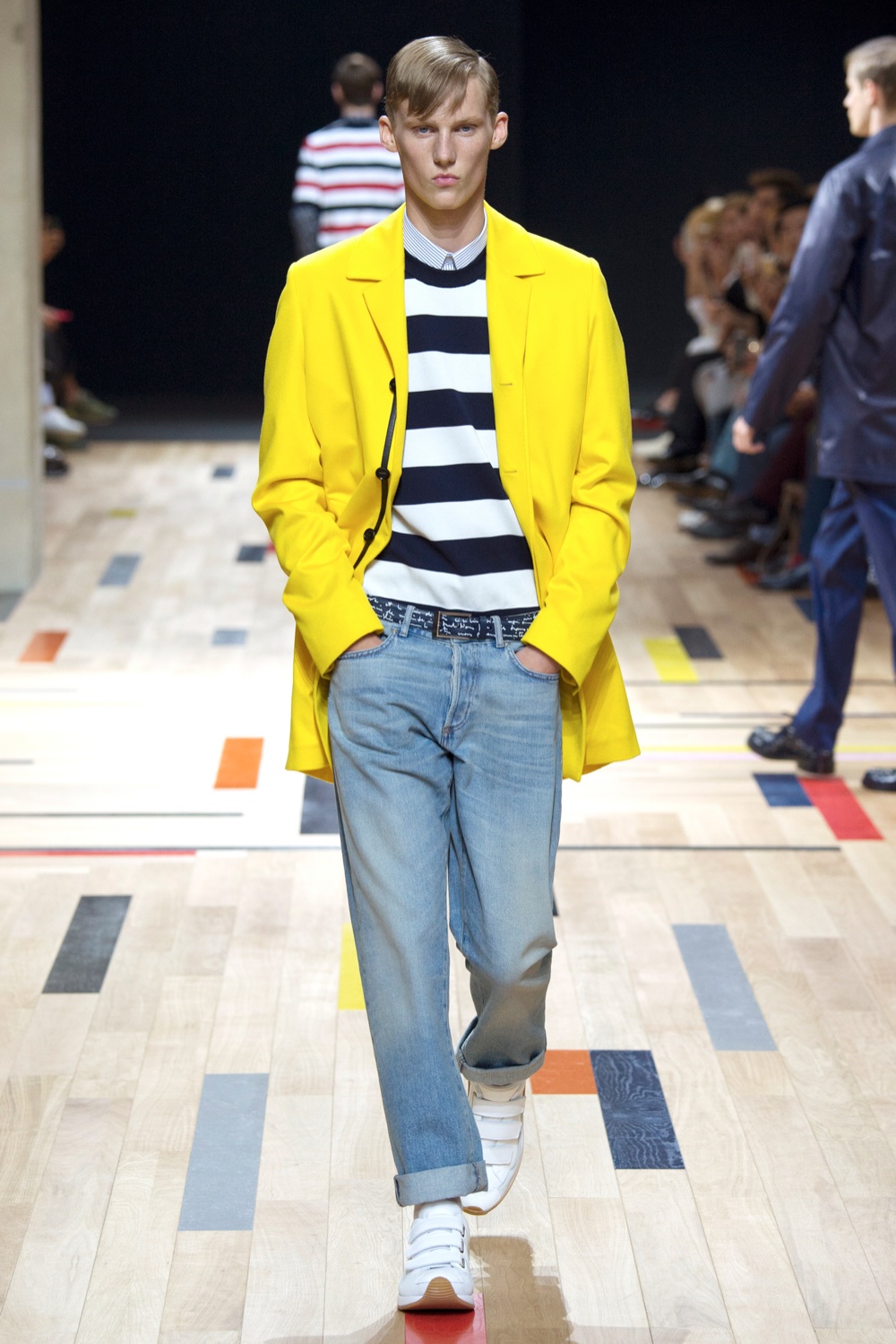 Fresia o Lemon Zest. Mimosa o Buttercup. Ma anche fluo e neon. Il giallo sale in passerella e con discrezione tinge un capo alla volta. Dall’impermeabile di MSGM completamente sfoderato e con cuciture termosaldate a prova di temporale al trench di Dior, portato con eleganza, anche sopra a un abito sartoriale total blu.