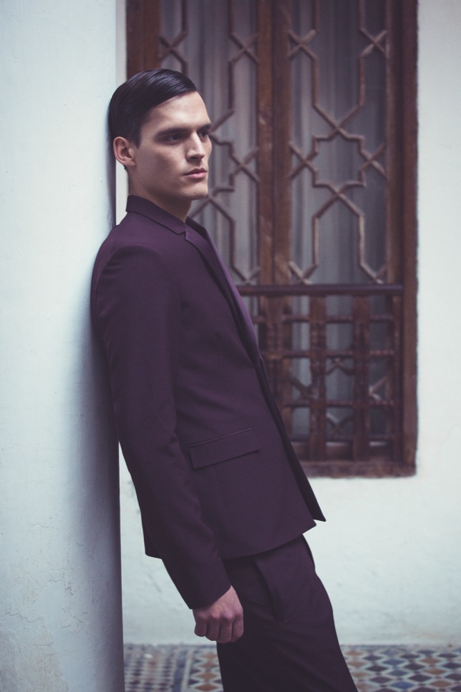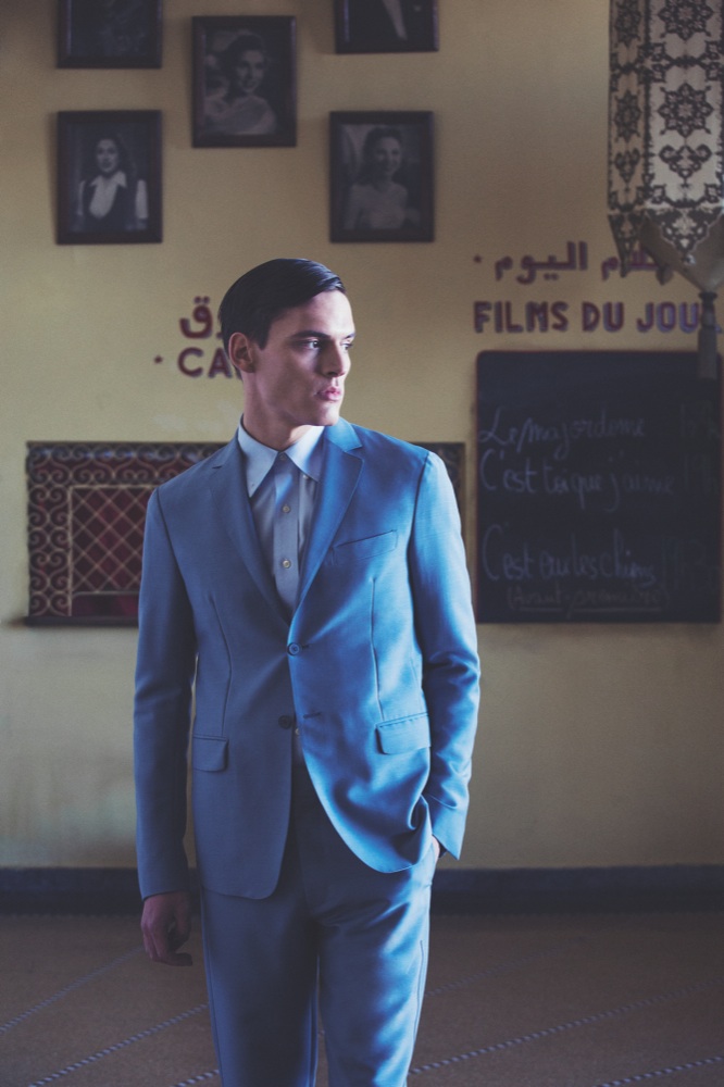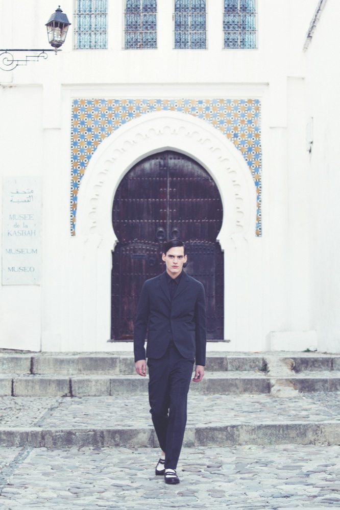 Total look Dior Homme. Sullo sfondo, uno scorcio del Palais Ben Abbou di proprietà della famiglia Akaaboune, nel cuore della Kasbah.
