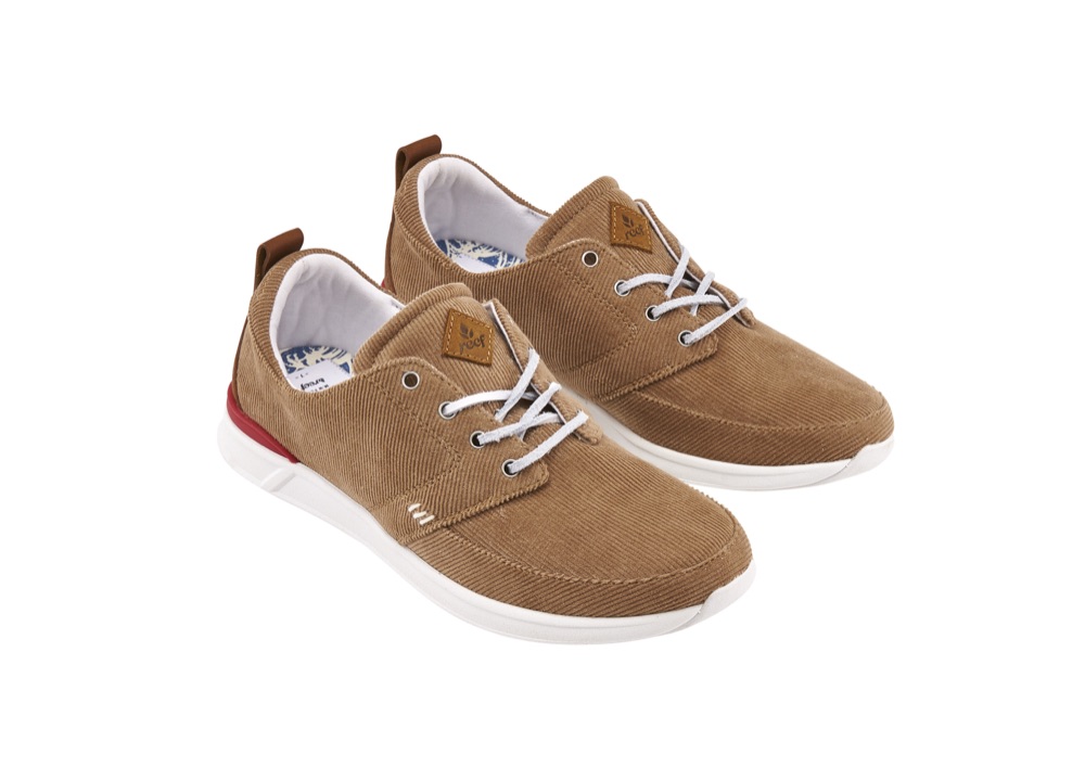 La palette cromatica guarda ai pastelli o a cromie spente, i jeans slavati a gamba dritta si abbinano a t-shirt in ottanio, petrolio e smeraldo, adeguandosi ai colori cangianti del mare. Le consistenze materiche sono sofisticate, ma dallo spessore consistente, ruvide e adatte ai cambiamenti di clima, al vento come al sole: gli shorts sono in chambray, i pantaloni in tela corduroy. Palme e fiori si stampano su t-shirt e maglie, in versione micro. Al bando le flip flop, anche in spiaggia si usano le sneakers, come quelle di Reef disegnate da Masafumi Watanabe e ispirate al surf style degli anni cinquanta: canvas, denim e corduroy le proteggono dal sale, e le cromie neutre nelle quali si declinano, cammello su tutte, sono ideali per evitare che sbiadiscano dopo una giornata al sole.