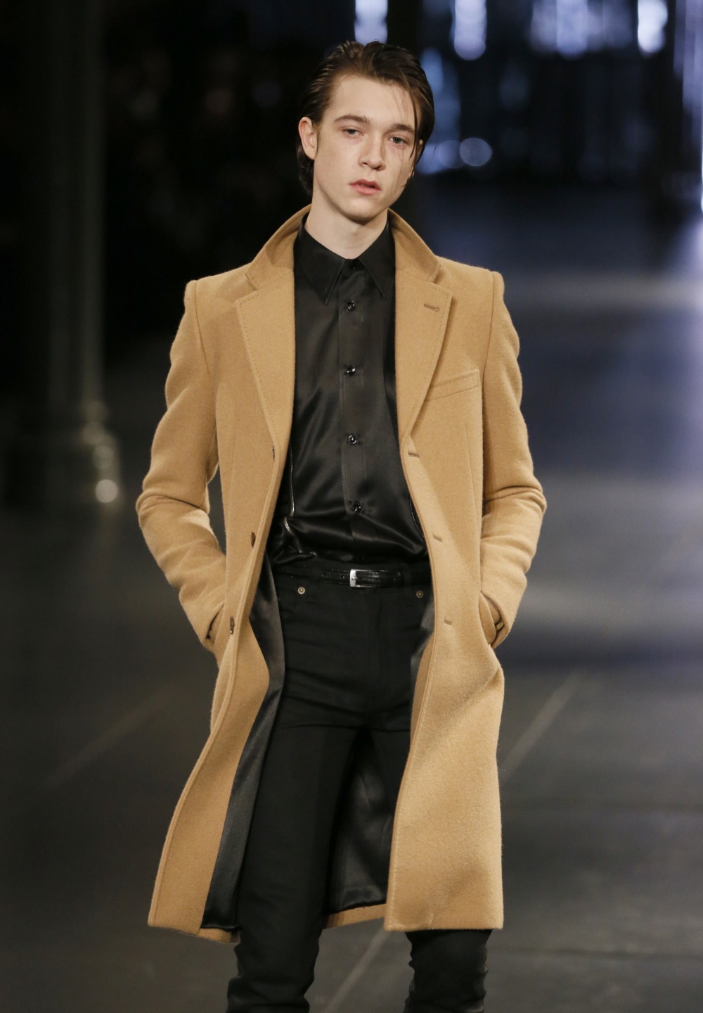 Saint Laurent, ad esempio arricchisce il suo vocabolario con riferimenti allo stile punk sartoriale di Joe Strummer: i classici pantaloni in pelle slim-fit, le camcie sbottonate e gli stivaletti a punta, si indossano con capispalla avvolgenti color cammello, in pieno stile London Calling dei Clash.