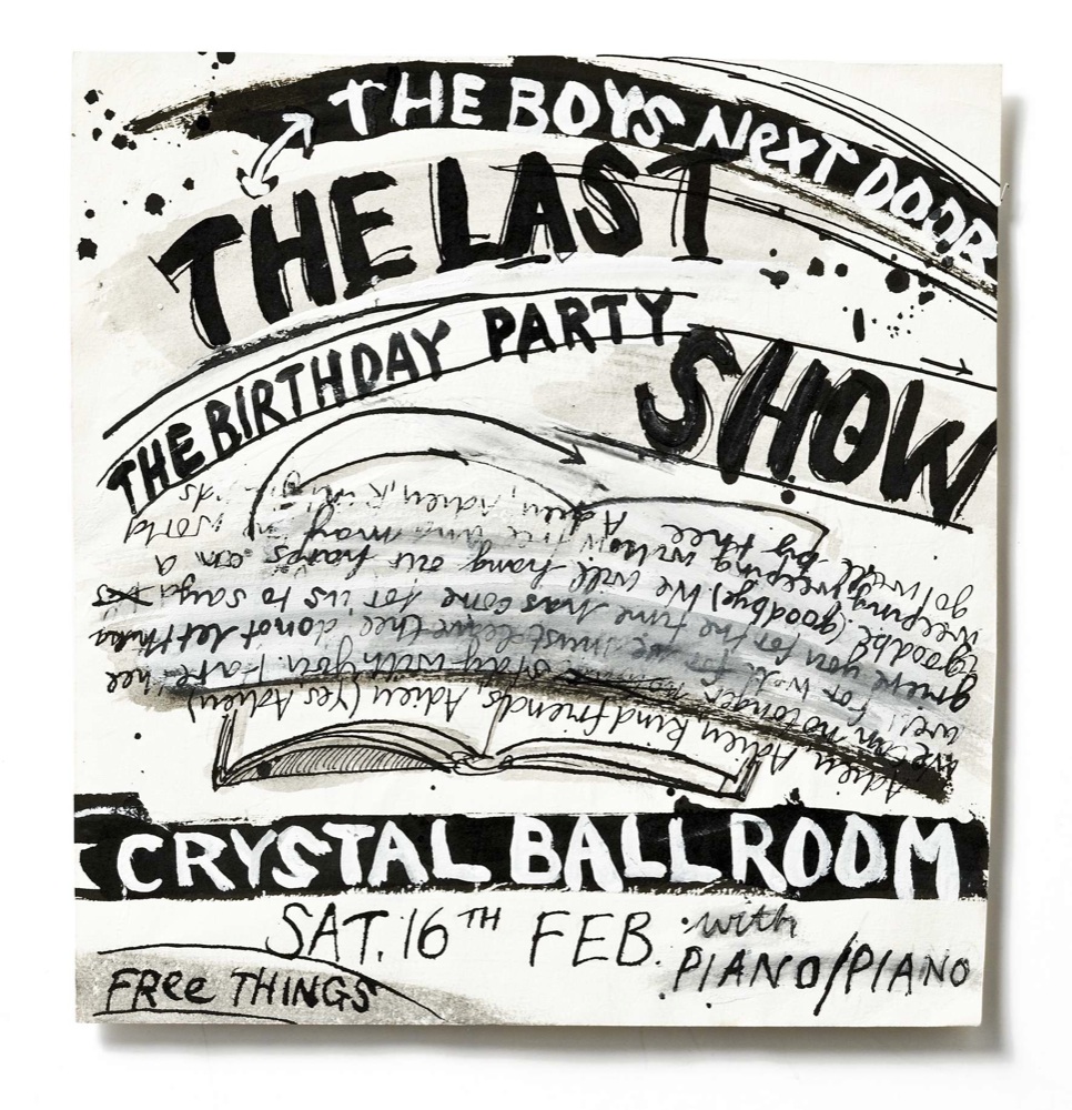Nick Cave comincia a redigere un abbecedario personale dalla grafia fitta di chi ha un animo in ebollizione; parole che intercetta nei romanzi di Faulkner, nelle sacre scritture, nei bugiardini dei barbiturici, in strada. Anacoreta, minzione imperiosa, mottetto, sgraffignare… Alto e basso, versetti biblici e slang urbano. Allo stesso modo, blues, free jazz e punk si amalgamano quando, un anno dopo, un volantino annuncia l’ultimo concerto dei ragazzi della porta accanto al Crystal Ballroom e la nascita dei Birthday Party, pronti a partire per mettere a ferro e fuoco la capitale musicale d’Europa.