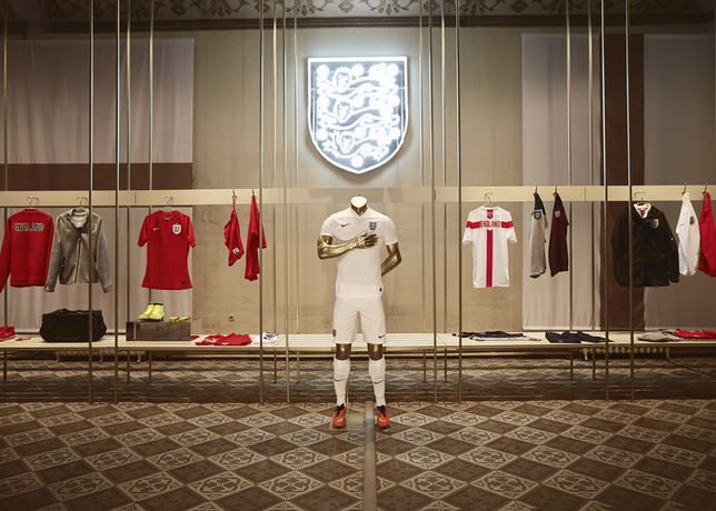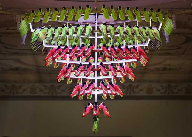 Nella seconda stanza, invece, appese a un lampadario illuminato con luci al neon le Nike Magista, le Nike Tiempo e le Nike Hypervenom. Per intenderci, le scarpe che sono ai piedi di calciatori del calibro di Cristiano Ronaldo, Andreas Iniesta e Andrea Pirlo. Alle pareti, i Team Kit al completo: sneakers, giacche a vento, borse, felpe, t-shirt e, per la prima volta, anche una linea dedicata alle donne realizzata in collaborazione con il Women’s Training team.