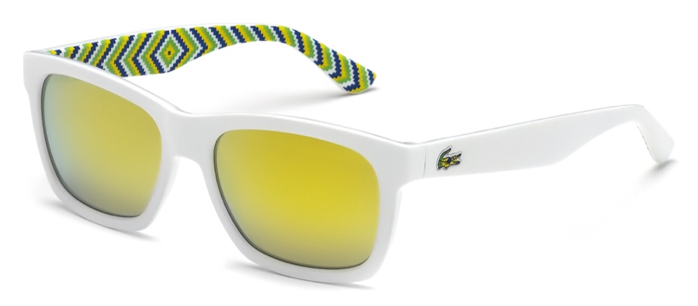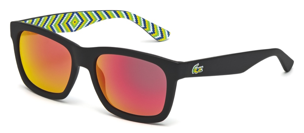 Cinque colori. Blu, verde, giallo, bianco e nero. I nuovi occhiali Rio di Lacoste by Marchon presentati in anteprima nell’elegante contesto del Roland Garros rendono omaggio al Brasile. Fedeli allo stile che caratterizza la maison francese i frontali si ispirano al modello più classico, gli L711S. Le aste e lo stesso coccodrillo, logo storico del brand, vestono i colori della Nazione che ospita i Mondiali di calcio.