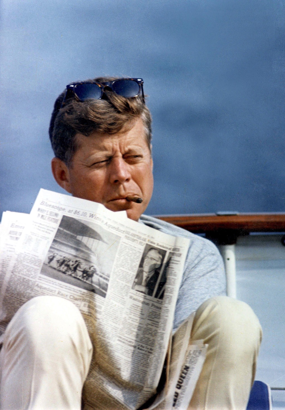 Sartoriale ma tecnico come Carrera by Safilo, estivo ma rigoroso, da indossare in barca o in un’occasione più formale, come il modello Gonzo di Super by Retrosuperfuture. Tutto riporta infine alla mente l’assertività mascolina eppure carica di messaggi positivi di John Kennedy, in vacanza sulla sua Honey Fitz a Hyannisport, un’immagine entrata da oltre cinquant’anni nell’immaginario collettivo, che non ha mai perso colore e potere seduttivo. Un’attitudine condivisa dal fondatore del marchio di occhiali, Daniel Beckermann: ‘lo stile è cutting edge, al passo con i tempi, un risultato che si ottiene sintetizzando la libertà e il rigore della disciplina, sempre con il totale controllo di quello che si sta facendo’. Un po’ come J.F.K.