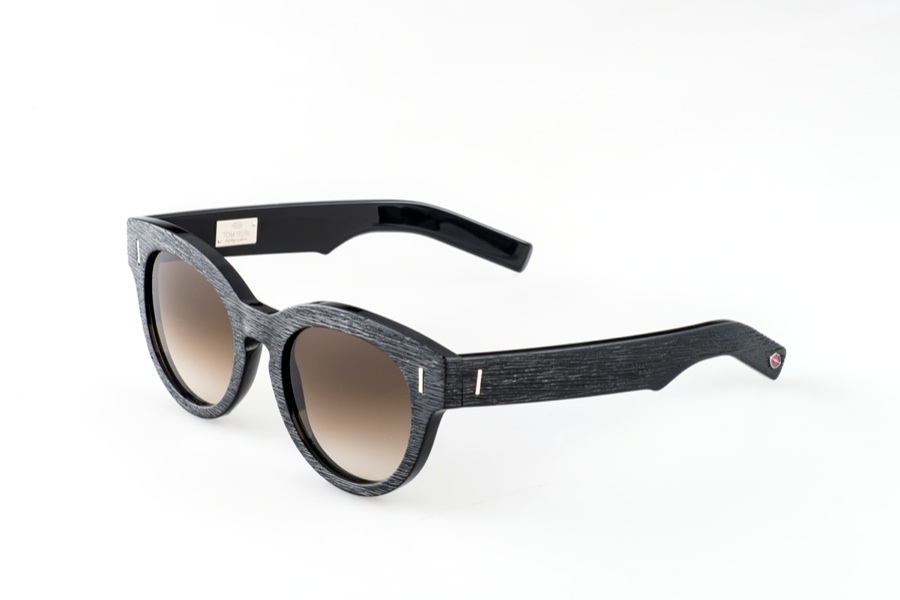 Total black. Occhiali Tom Rebl Eyewear by Pregiata con inedita cerniera in acciaio inserita a graffetta.Ha shape tonda e ponte a chiave. I trattamenti superficiali artigianali, la placca in acciaio con il logo inserita all’interno delle aste e gli abbinamenti a contrasto completa il modello