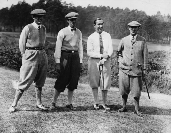 Sono i primi anni Trenta, i giocatori indossavano i tradizionali knickers pants al ginocchio spesso sorretti da bretelle in cuoio. La cravatta era un must così come i tessuti in tweed che primeggiavano su abiti formali, soprattutto sulle storiche Norfolk jacket caratterizzate dalle due pieghe a cannone speculari davanti e dietro, e dalla cintura in vita e sui cappelli, spesso coppole, che richiamavano la stessa stampa check dei calzettoni. Concorrente in fatto di stile, oltre che di coppe collezionate in bachca, Sir Henry Thomas Cotton che sul green sfoggiava completi da golf composti da cardigan e maglioni tricot con scollo a V e i primi loghi dei Club ricamati a mano sul petto che avrebbero poi segnato la storia del golf wearing.