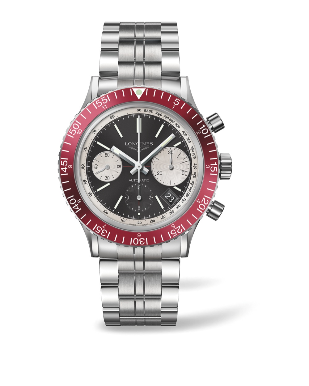 Longines invece riedita lo storico modello da sub del 1967. Il nuovo Longines Heritage Diver 1967, oltre ad avere la scala tachimetrica, ha lunetta subacquea graduata in bordeaux che contrasta elegantemente con il quadrante nero opalino e con i contatori argentati. Nello spirito degli orologi subacquei, le lancette e gli indici sono rivestiti di Super-LumiNova, mentre il fondello e la corona sono avvitati, per garantire l’impermeabilità del segnatempo fino a 30 bar.