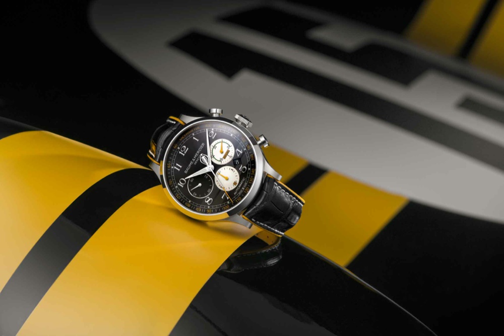 Essenziale anche il design della collezione Capeland Shelby Cobra di Baume & Mercier. Ispirato alle prestazioni della Cobra, il movimento automatico svizzero è una sintesi di precisione e qualità in linea con gli standard più elevati. Il fondello ha inciso il nome della collezione e la dicitura ‘one out of 1.963’, riferimento al numero degli esemplari in edizione limitata e all’anno in cui la Cobra vinse per la prima volta il campionato americano. Ha vetro zaffiro con il celebre numero 15 della CSX2128, cassa 44 mm, contatori asimmetrici, quadrante nero con le lancette che riprendono la forma del volante sottolineano l’omaggio all’auto e cinturino in alligatore nero con fodera gommata gialla.