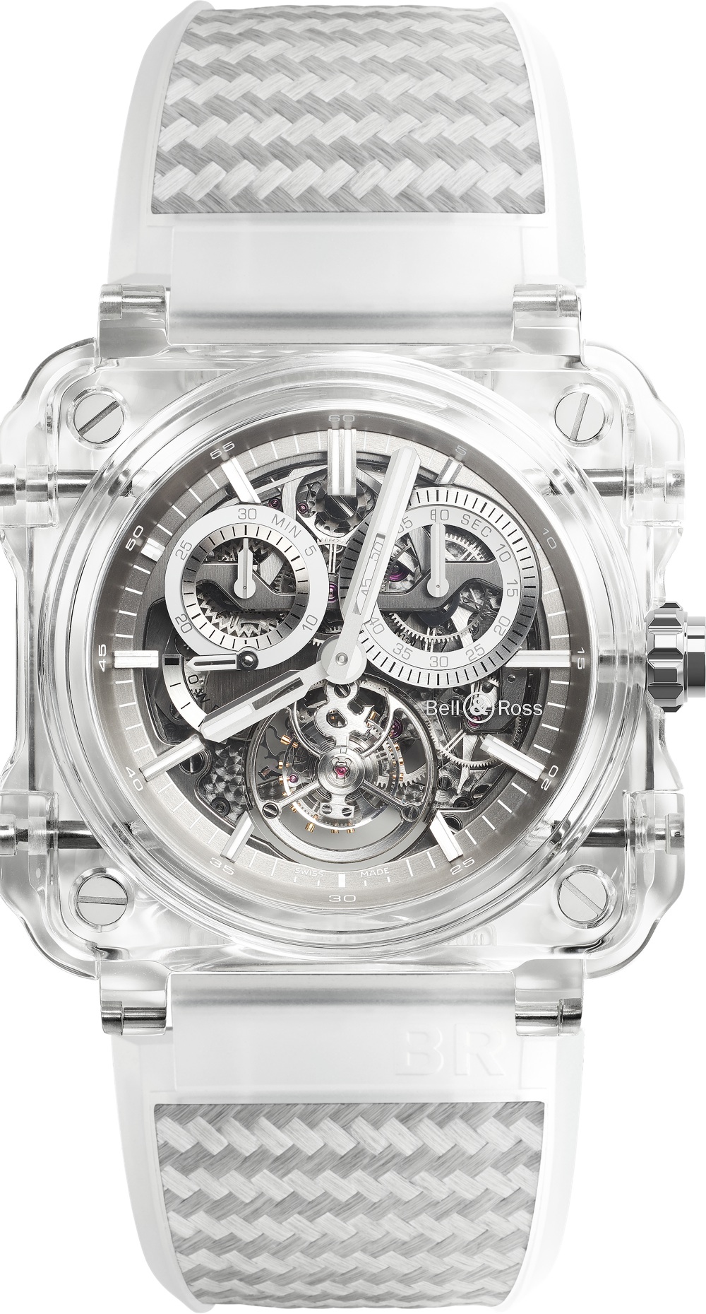 Una nuova avventura, invece, quella di Bell&Ross con il nuovo BR-X1 Chronograph Tourbillon Sapphire ispirato alla strumentazione aeronautica un design totalmente rivoluzionario che crea un orologio completamente trasparente grazie alla sua cassa in zaffiro. La sofisticata scheletratura del movimento permette di osservare un’autentica coreografia meccanica con l’avvio, l’arresto e l’azzeramento della funzione crono mentre il tourbillon volante, che sembra galleggiare sospeso in assenza di gravità, si affianca ad un movimento cronografo monopulsante, la cui platina e i cui pignoni sono stati scolpiti in un unico blocco di metallo. Un modello per pochi, con un’edizione limitata a soli 5 pezzi.