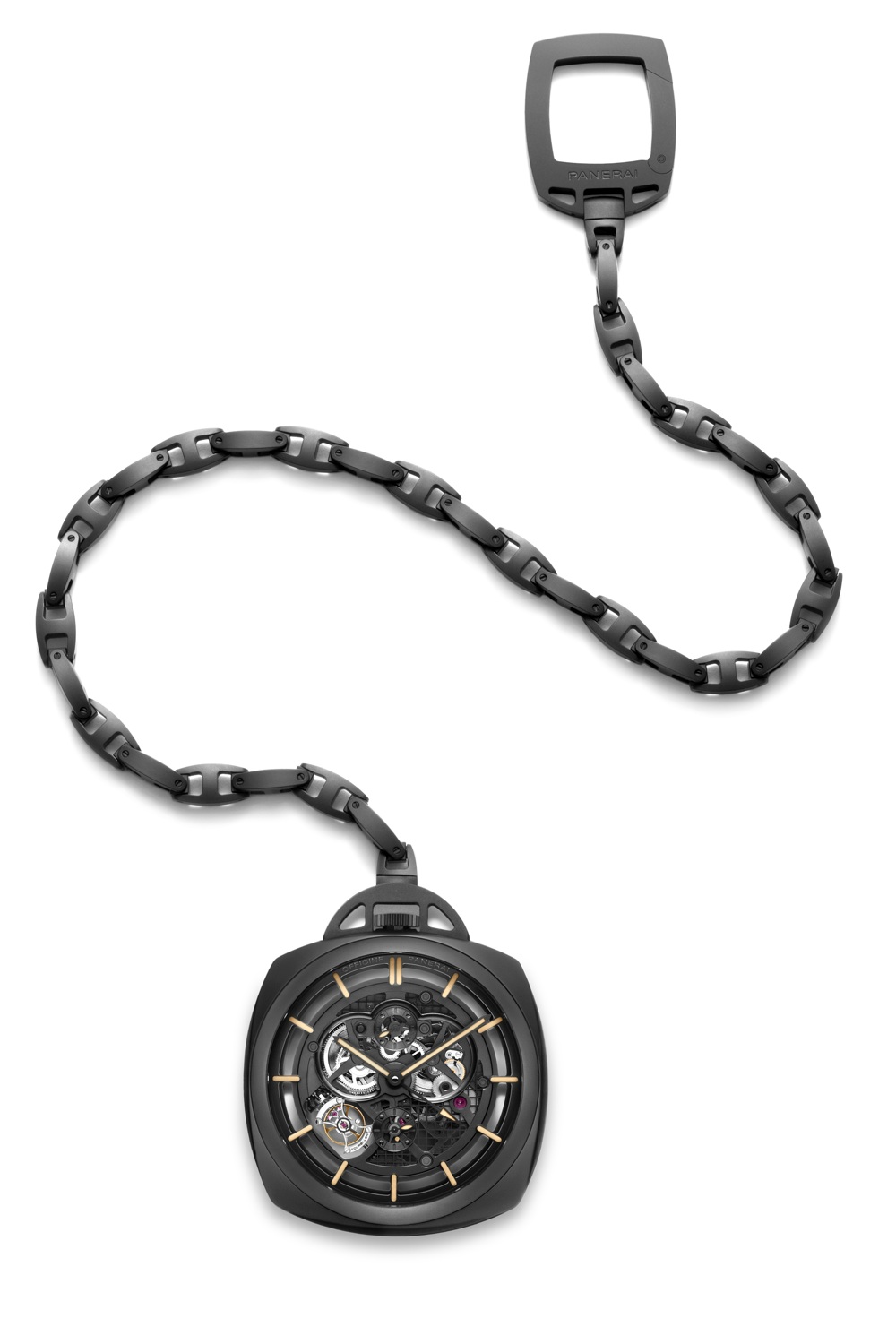 Innovativo anche il modello proposto da Officine Panerai. Il Pocket Watch Tourbillon GMT in Ceramica con cassa nera 59 millimetri è in edizione limitata a cinquanta pezzi. Ha movimento meccanico a carica manuale, con riserva di 6 giorni, fondo a vista in vetro zaffiro e lunetta in ceramica nera. Ha poi la catenina in ceramica personalizzata Panerai. Infine Cartier, con il suo Drive, un orologio dal carattere deciso che manifesta indipendenza, istinto ed eleganza. Attraverso l’estetica forma coussin della cassa, il Drive De cartier è un segnatempo per appassionati ed intenditori, un pregiato esemplare di forma, tradizione della Maison. La cassa, in oro rosa o acciaio, è dotata di un quadrante guilloché nero, grigio o bianco con numeri romani e lancette a forma di gladio. Attraverso il fondello trasparente è possibile ammirare il movimento di Manifattura 1904 MC proposto in due versioni: ore, minuti e piccoli secondi per il 1904-PS MC, secondo fuso orario, indicatore giorno e notte, grande datario e piccoli secondi per il 1904-FU MC. È inoltre disponibile nella versione Alta Orologeria, certificata “Poinçon de Genève” e dotata di tourbillon volante 9452 MC.
