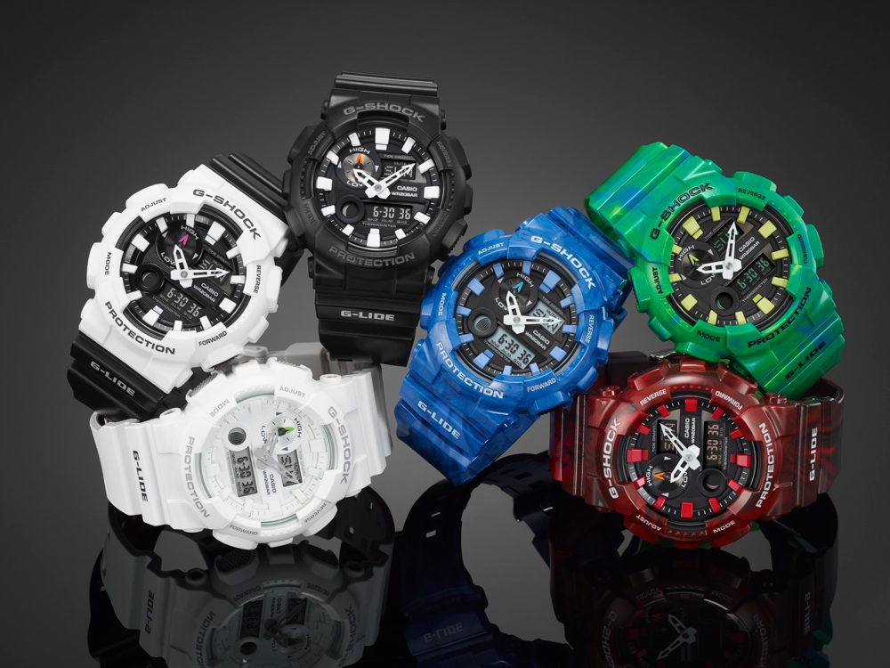 Anche Casio pensa agli appassionati delle onde e lancia la nuova collezione G-Shok G-LIDE COMBI che porta la mente verso paesaggi esotici:tra tavole da surf e verdi palme, stile Los Angeles.