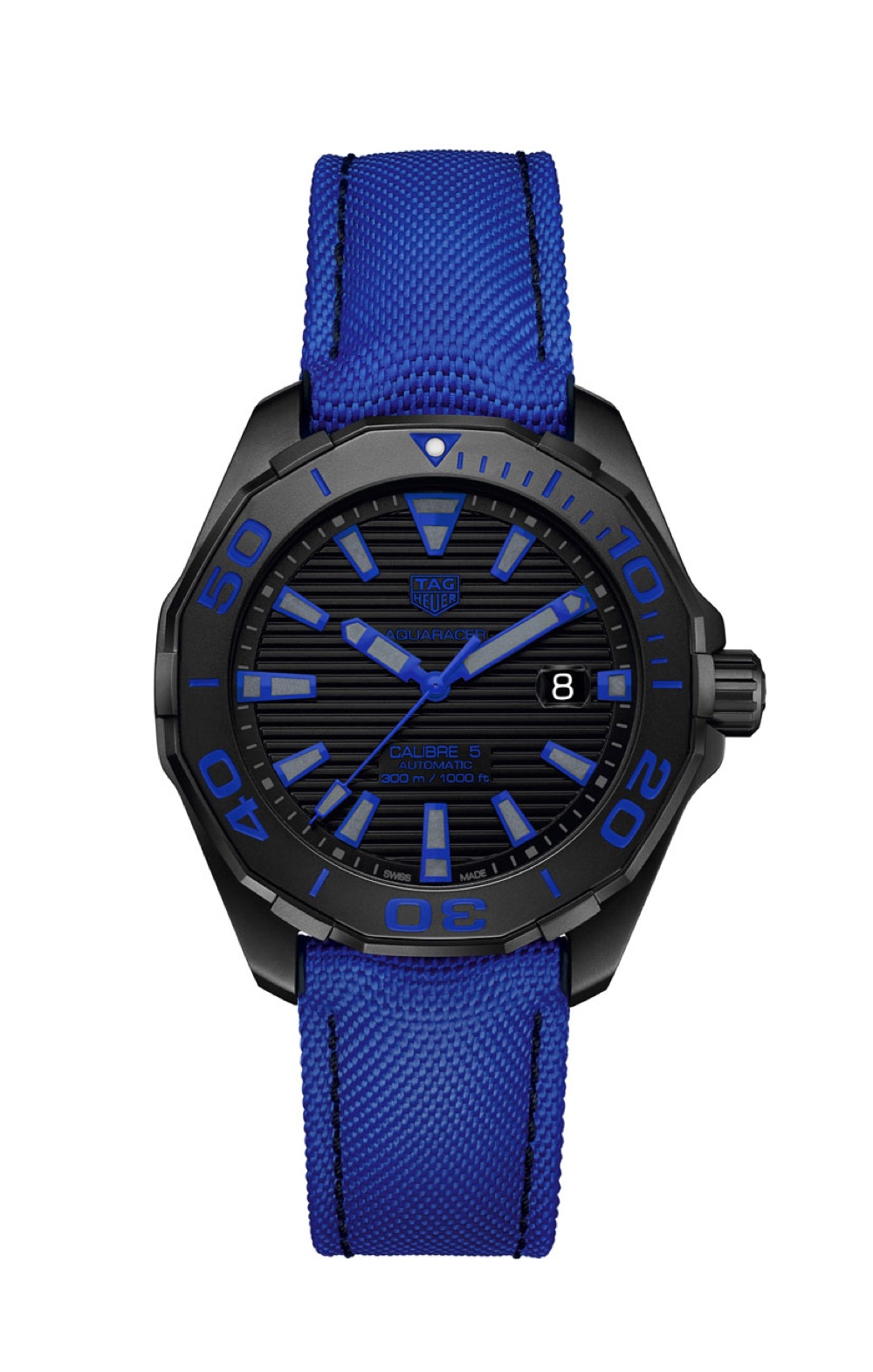 Adorato dai surfisti, per esempio, è il nuovo Aquaracer Calibre 5 Black Titanium Case di Tag Heuer che si conferma Official Watch del Big Wave Tour del Campionato Mondiale di Surf e, non a caso, si trova al polso del campione (di surf, windsurf, kitesurf e Stand up paddle surf) hawaiano Kai Lenny. Si tratta di un’inedita versione con cassa rivestita in carburo di titanio. Ha lunetta lunetta girevole unidirezionale in ceramica nera con dettagli blu resistente alla corrosione del sale, cassa 43mm, quadrante nero con righe orizzontali, vetro zaffiro inscalfibile con doppio trattamento anti riflesso e cinturino in tessuto.