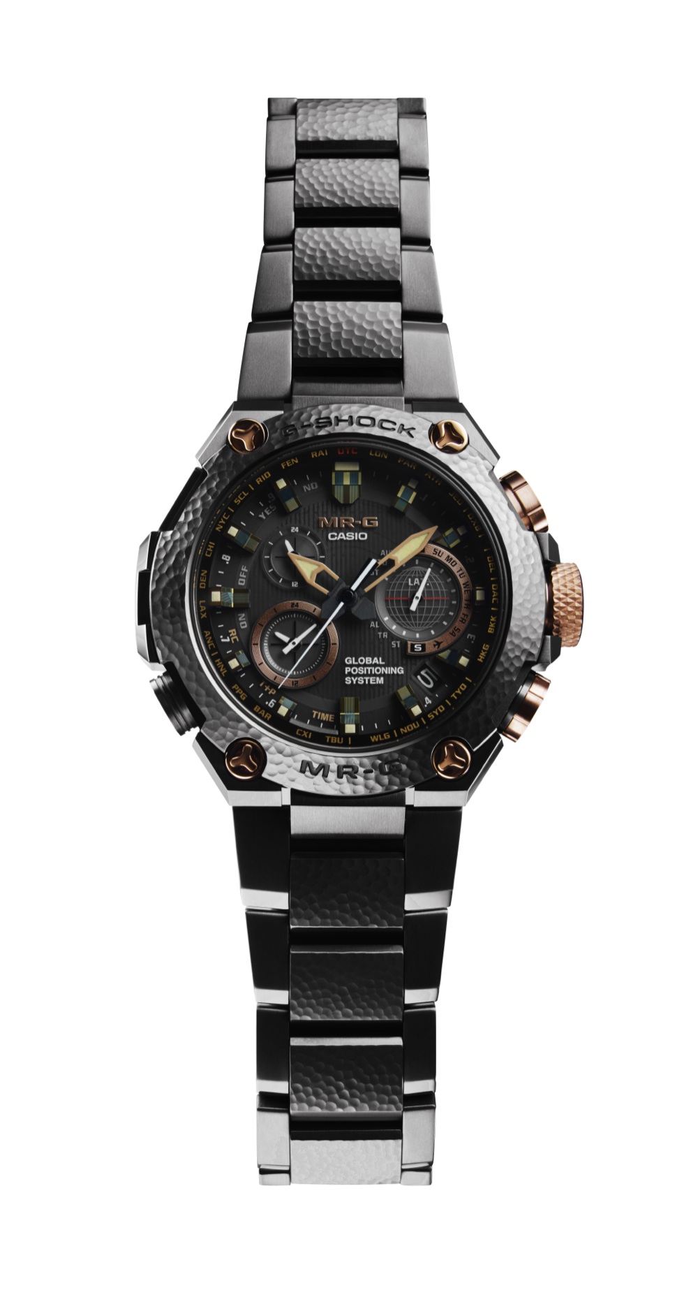 Stesse nuance, sempre limited edition. La collezione MR-G di G-SHOCK compie 20 anni e celebra il suo anniversario con un’edizione limitata a solo 300 pezzi realizzata in collaborazione con Bihou Asano, mastro artigiano giapponese di terza generazione, originario della città di Kyoto. La tecnica impiegata per forgiare questo orologio si chiama *Tsuiki, attraverso la quale un foglio di metallo viene martellato affinché si assottigli, assumendo una forma tridimensionale. Storicamente questo metodo è stato adoperato per la realizzazione di oggetti in rame, contenitori metallici, armature ed elmi che, appunto, dovevano essere al contempo sottili e resistenti.