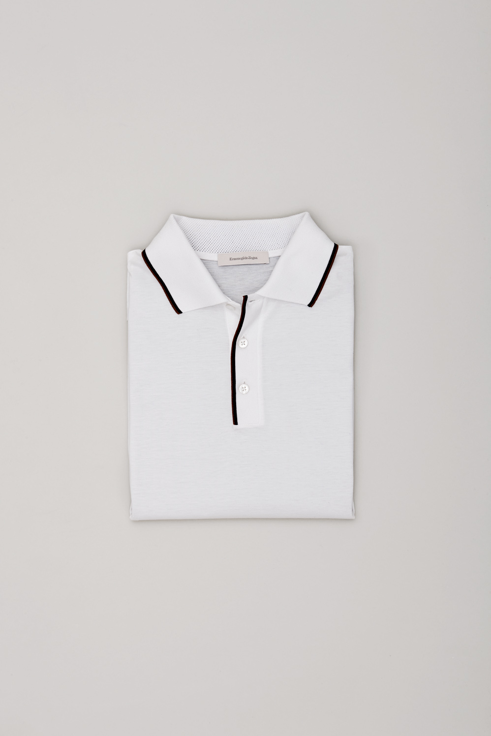 Le polo a maniche corte entrano nel guardaroba maschile di questa primavera sostituendo, a volte, anche la camicia. Sono realizzate tessendo il filo di Scozia, il più nobile tra i cotoni. Resistente e lucido come seta, è preparato seguendo cinque cicli di lavorazione. Dalla pettinatura, che elimina le fibre più corte, alla ritorcitura, che li rende più resistenti. Dalla bruciatura, che rende omogenea la superficie del tessuto, alla setificazione, un trattamento che lo trasforma in uno dei tessuti più morbidi e lucenti, fino alla tintura in matasse. Altre, invece, sono in piqué di cotone, con armatura a due trame, o in jersey lavorato mescolando fili di seta e cachemire o, ancora, sono realizzate con filati in microfibra hi-tech, che favoriscono la traspirazione, si asciugano rapidamente e hanno tecnologia UV Protection per ridirre l’assorbimento dei raggi solari. Perfette se indossate in barca o sul campo da golf. I tagli, infine, sono slim, disegnati ad hoc per non ingombrare se infilate dentro a pantaloni sartoriali con le pince o portate sotto a blazer destrutturati e completi formali. Hanno colletti con sottili profili a contrasto, ripresi poi sugli orli a costine del giro manica, spacchi laterali, due a quattro bottoni in madreperla e loghi ricamati a mano sul petto.