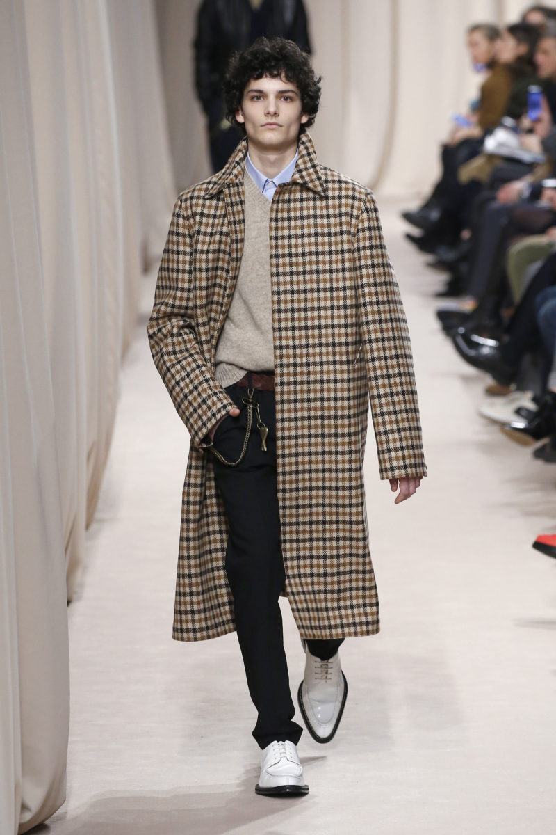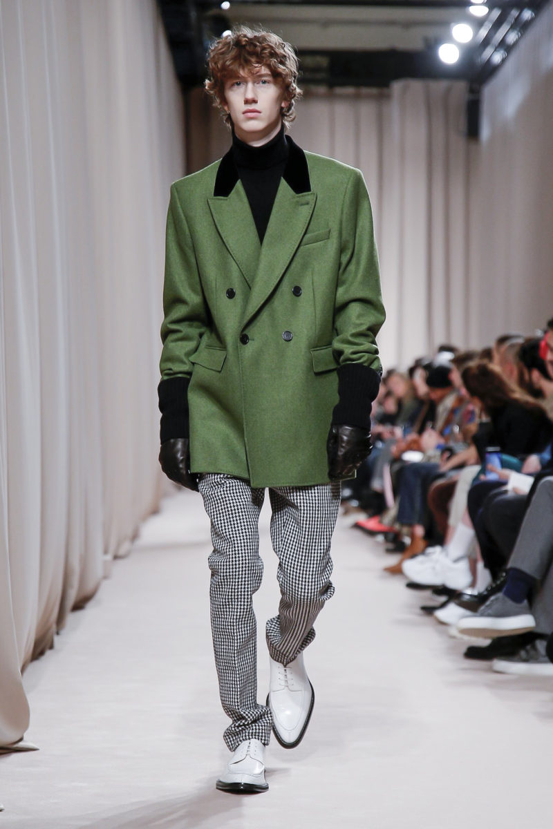 Alexandre Mattiussi per AMI Paris scrive una collezione che omaggia la borghesia dello scorso secolo. I rampolli parigini hanno così sfilato indossando una sartoria dagli ampi volumi e dalle palette colore dei macarons della pasticceria Ladurèe. Un defilè di doppipetto in velluto e montgomery in lana cotta, ampi pullover infilati dentro a pantaloni a vita alta quasi distrattamete e giacche check o spigate dal quale penzolavano le lunghe maniche delle camicie.