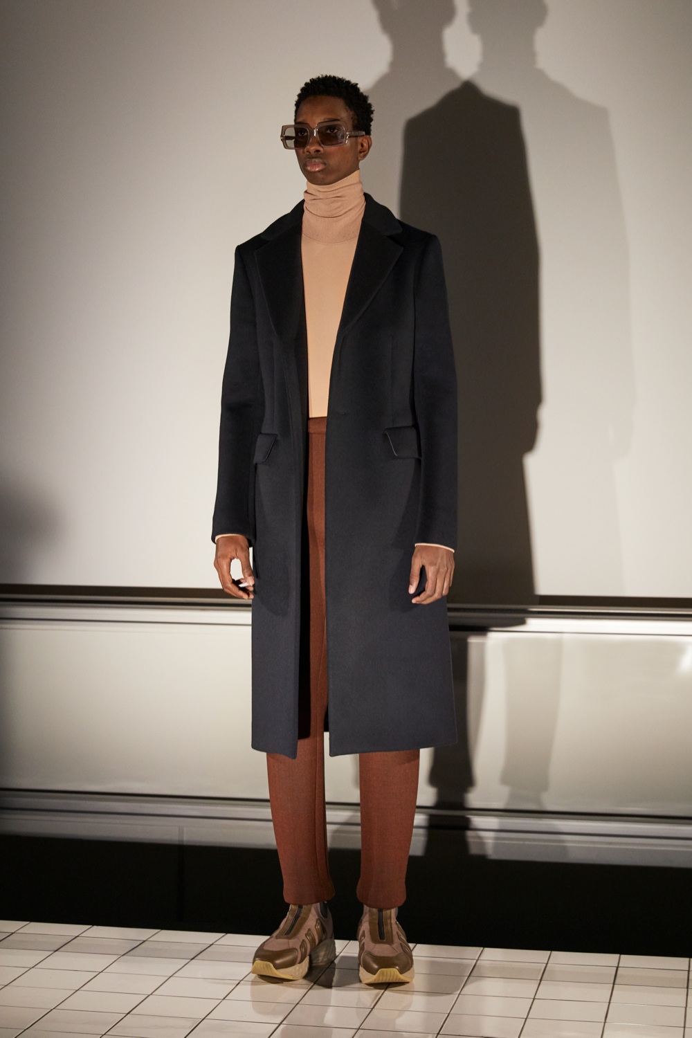 Il premio per la miglior presentazione va invece a Jonny Johansson per Acne Studios. Un’aula della Facoltà di Farmacia, un professore che attraversa più di un secolo di storia per raccontare l’origine del selfie, una ventina di modelli che sfilano, nel frattempo, su un bancone di piastrelle bianche che probabilmente ha ospitato la sezione di qualche cadavere durante la lezione di medicina legale. Tutti attenti a prendere appunti. I cappotti sono over, in neoprene, così come i pantaloni e le sneaker, le camicie rigate e gessate e dai collli enormi come negli anni ottanta, dolcevita in cashmere, di nuovo il rosa, bretelle e maglioni con zip e colli cartoon.