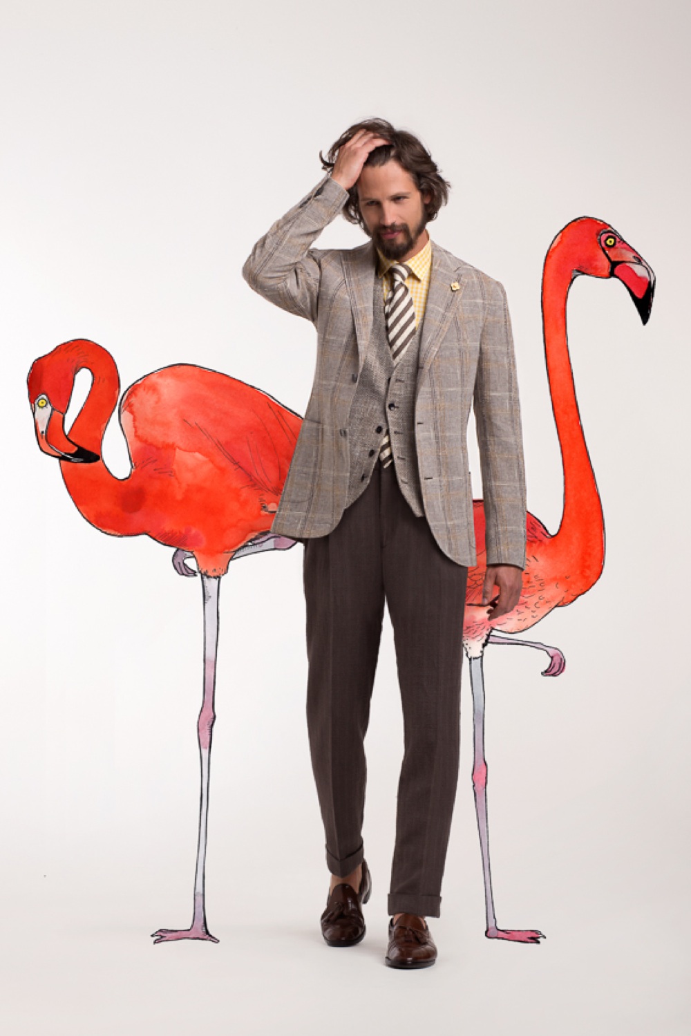 Il caldo della giungla metropolitana ispira la moda uomo della prossima primavera-estate 2015. A Pitti Uomo 86 il gentleman guarda ai colori d’Oriente e alle nuance del deserto per una rivisitazione in stile che fa pensare all’eleganza british del film Tè nel Deserto, ma con dei tocchi più urban. Catapultati nelle atmosfere delle colonie dei primi decenni del Novecento ritroviamo pantaloni kaki, panama, camicie in lino, chemisier, sahariane, bisacce e scarpe stringate in cuoio o in tela alte sopra la caviglia. Capo simbolo di questo trend: la sahariana. Si tratta di una giacca in cotone o in lino, multitasche, leggermente allungata e stretta in vita da una culisse o da una cintura tono su tono. Delle sue origini africane mantiene la foggia, ma si sdrammatizza con stampe, tessuti tecnici e dettagli sartoriali. I colori del deserto anche per l’ufficio, dove la giacca beige si aleggerisce e magari osa macro check da abbinare a camicia avorio e cravatta regimental, come propone la gallery di Icon.