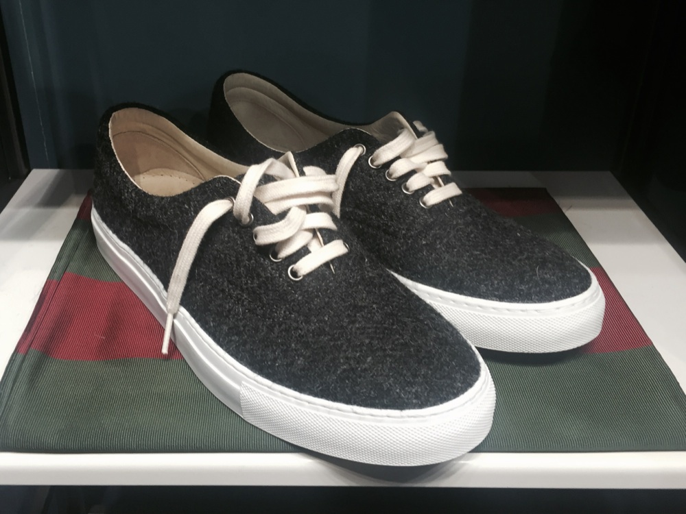 Sono in lana anche le sneaker del brand che ha debutatto per la prima volta a Pitti Uomo 89: doppiaA, fondato da Alain Fracassi e Albert Carreras. La collezione è una macchina del tempo che attraversa diverse generazioni senza seguire per forza il percorso del trend della moda attuale mescolando formale e informale. Tra gli accessori spuntano le sneaker in tweed dai colori neutri, grigio, nero, verde oliva. Un dettaglio che contrasta giacche monopetto e cappotti “baronetto”, chinos in velluto a coste e denim indaco.