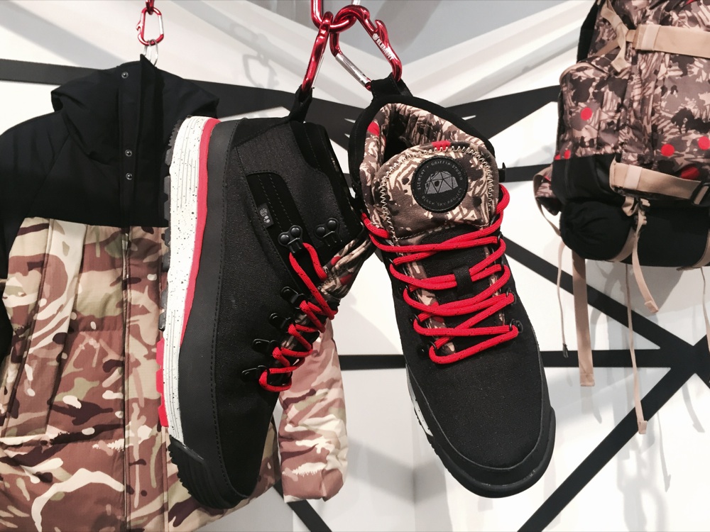Cavalca l’onda anche Diadora Heritage che, per la collezione FW 16/17, prende in prestito lane intrecciate e tessuti spinati dal mondo sartoriale. Il risultato è un approccio moderno allo sportswear dove elementi tecnologici e forme architettoniche incontrano i tessuti tipici dell’abbigliamento invernale. L’utilizzo di particolari costruzioni come la suola vulcanizzata e l’inserimento di un calzino in feltro strech all’interno della sneaker rinnovano anche i modelli di D.A.T.E. Il modello Court Pop Polar ispirato allo stile british contemporaneo è proposto così in lana macro check, nei toni avorio e nero, abbinata a pelle nera e suede color chianti.