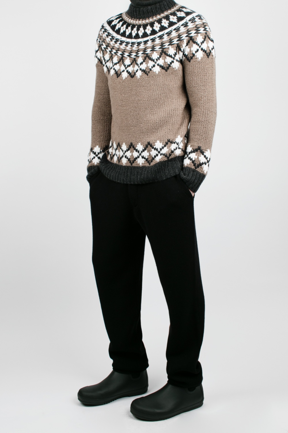 Ci sono i maglioni dall’anima sporty-chic con jacquard a macro motivo piè-de-poule che in un gioco di mischie di filati dona movimento e personalità a un capo in stile Richie Tenenbaum. E i knitwear artigianali con lavorazioni ad intarsio e materie prime sottoposte a trattamenti speciali fino i pullover misto alpaca con macro rombi dall’effetto (volontariamente) infeltrito.