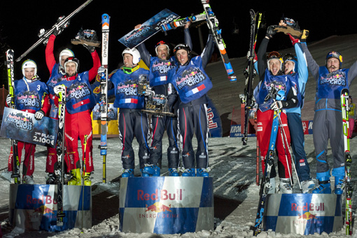 Da sempre fedele alle imprese sensazionali, Red Bull non poteva “bucare” lo skicross! Disciplina dello ski freestyle in cui gli atleti devono percorrere una pista creata artificialmente con una serie di difficoltà, lo skicross è stato introdotto due anni alle olimpiadi invernali di Vancouver. A Plan De Corones si è tenuta la seconda edizione del Red Bull Kronplatz Cross, che ha visto trionfare il Team francese formato da Jonas Devouassoux, Arnaud Bovolenta e Jean-Frédéric Chapuis in una gara ad altissimo quoziente tecnico su un percorso di 820 metri per un dislivello di 350 con 12 curve, 18 ostacoli, una parabolica positiva e una negativa, un tunnel e un doppio woops.