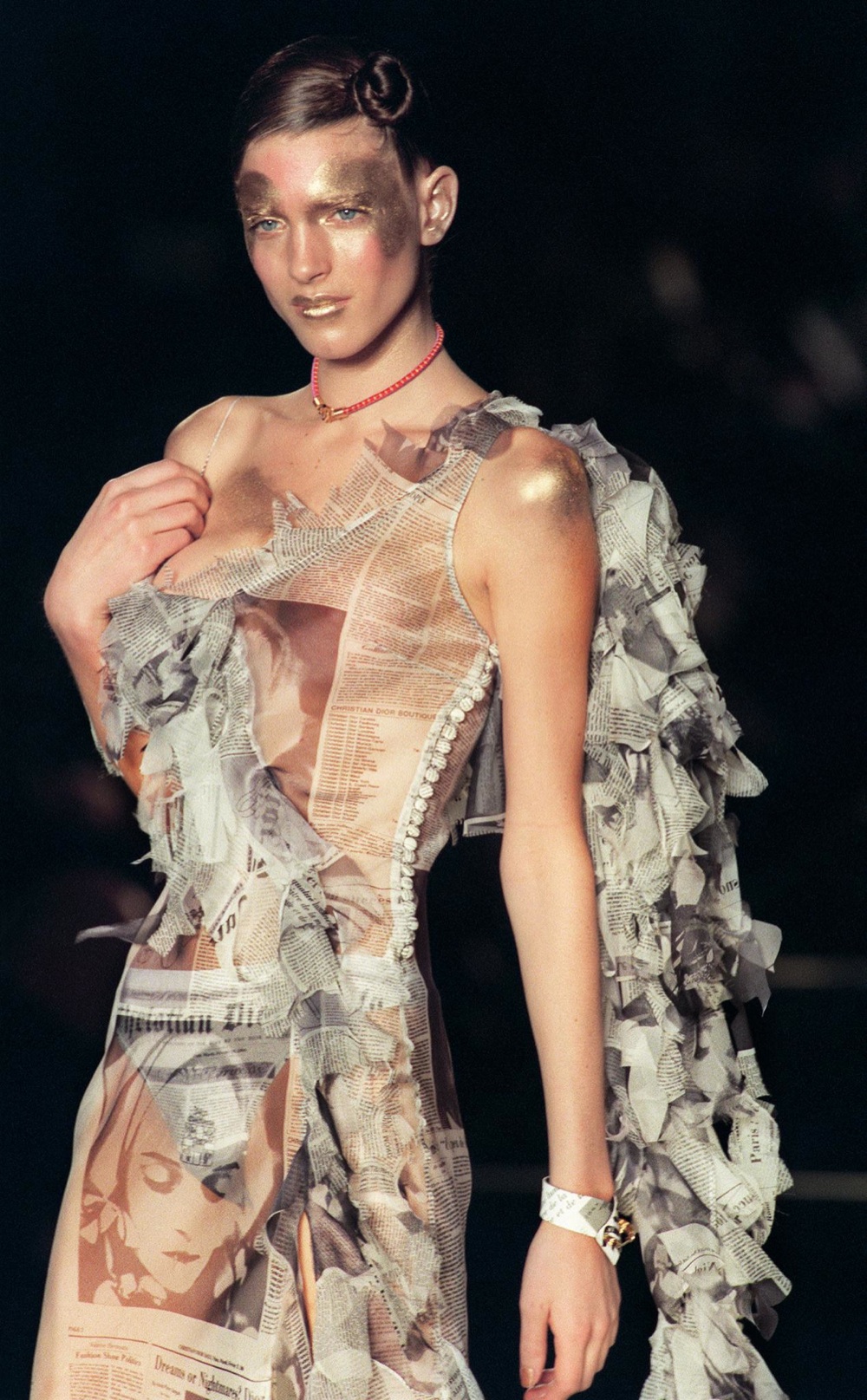 Nel 1997 arriva da Dior, lasciando in eredità il suo posto da Givenchy ad Alexander McQueen, unico genio a lui pari in quanto ad amore per la teatralità. Da LVMH lavora per 15 anni, regalando alla maison quadri e opere d’arte, più che semplici pezzi d’abbigliamento. Rivisita la classica Bar Jacket esaltando la baschina della giacca più famosa di Dior, si sposta con scioltezza dalla corte di Versailles al seicento fiammingo, creando un universo multiforme e iper colorato di principesse in fuga dalla rivoluzione sovietica e ballerine della Belle Epoque. Il giudizio morale è sospeso, sante e peccatrici sono uguali, l’importante è la drammaticità, sempre ai massimi livelli, come nella collezione disegnata per il suo marchio nel 1994.