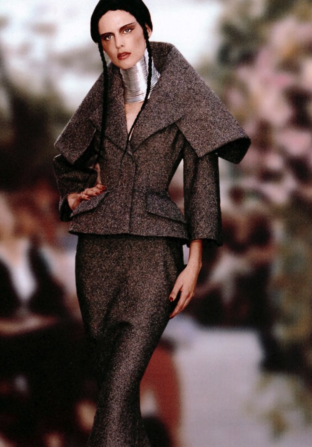 Le sue incursioni geografiche non risparmiano neanche il paese del Sol Levante, centro nevralgico d’interesse nella moda degli anni novanta, grazie a nomi come Rei Kawakubo, Yohji Yamamoto e Issey Miyake. Il suo Giappone è però lontano anni luce da quello minimale, in bianco e nero dei designer della triade giapponese dell’unisex. Le sue geishe, lussuriose e colorate di nuance pastello, indossano kimono ricamati dai migliori artigiani francesi, senza rinnegare nulla della loro carica sensuale.