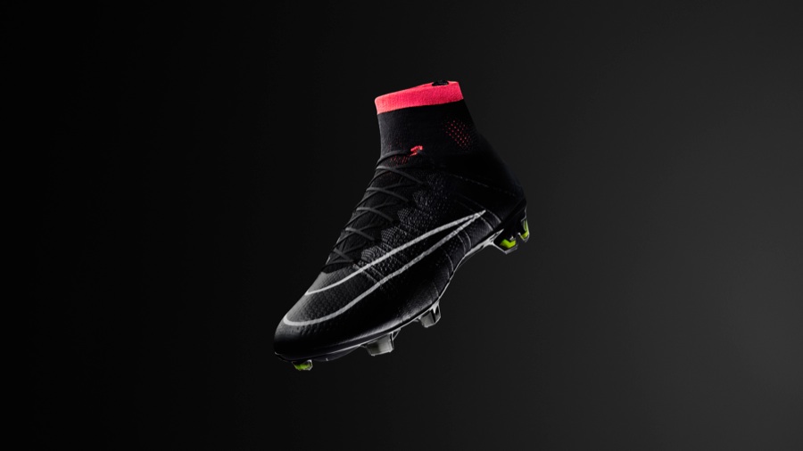Il design delle Mercurial Superfly è ispirato al Flyknit, un tessuto composto da tre maglie che riduce nettamente il materiale tra il piede e il pallone. ‘È come un prolungamento del corpo. Le scarpe sono studiate per aumentare la sensibilità e il tocco dei giocatori’, ha spiegato ad Icon Phil McCartney, global VP di Sport Performance di Nike rigirando tra le mani la versione total black. ‘Il Dynamic Fit Collar è come una calza che sostiene la caviglia senza impedirne i movimenti di flessione e estensione. Rende il piede più reattivo. Siamo partiti dall’idea di aumentare la velocità diminuendo le distrazioni. Aiuterà i giocatori a migliorare la potenza, la sensibilità e l’impatto della scarpa con il pallone’.