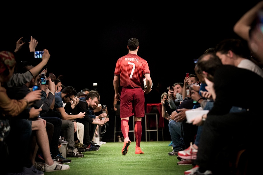 Ed ecco il momento di Cristiano Ronaldo che sfila in passerella indossando le nuove Mercurial e, tra i piedi, un pallone da calcio con cui compie un paio di trick davanti ai flash dei fotografi. ‘Comode e performanti. Nike ha davvero rivoluzionato le calzature adattandole ai miei feedback’, ha raccontato il vincitore dell’ultimo Pallone d’Oro.