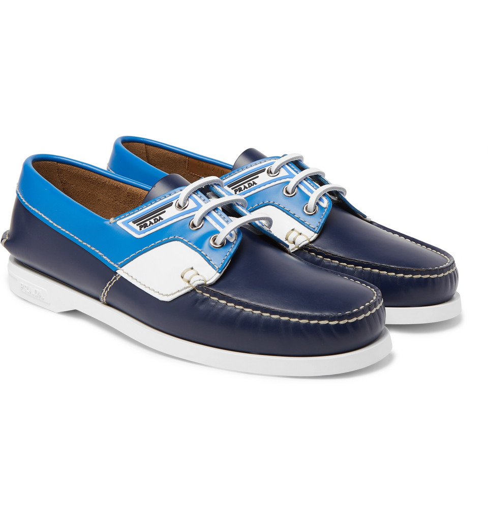 Le tomaie sono in morbido suède trattato anti acqua, in pregiato vitello rovesciato, completamente destrutturata come quelle di Brunello Cucinelli, oppure in pelle spazzolata color block, come i mocassini di Prada con cuciture a mano e inserto in pelle con il logo.