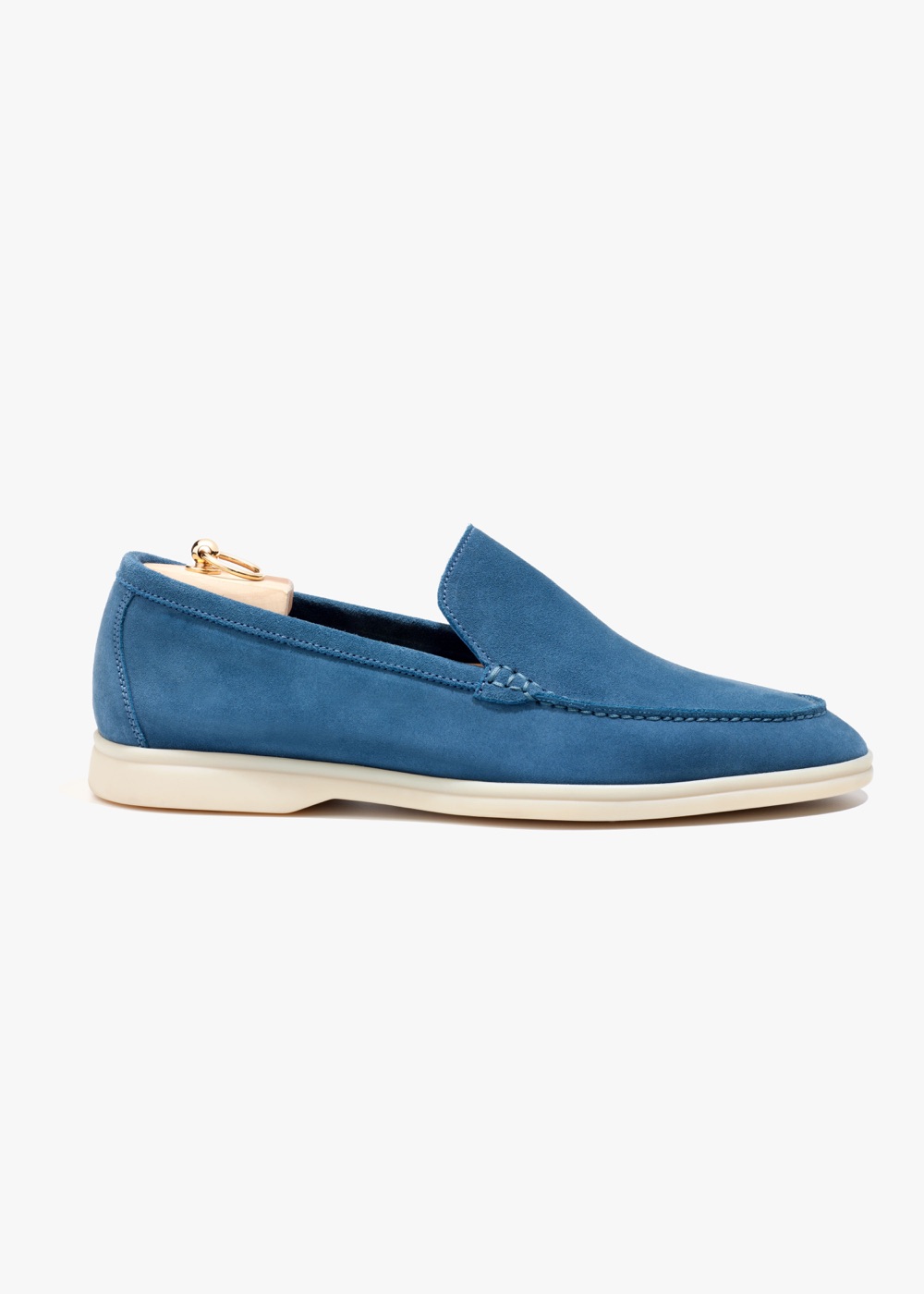 Le suole delle Summer Walk di Loro Piana, mocassini morbidi e leggeri, che garantiscono il massimo comfort grazie alla costruzione ben studiata con molti passaggi fatti a mano, hanno un effetto anti scivolo ottenuto mediante l’incisione delle lettere LP che si rincorrono senza soluzione di continuità.