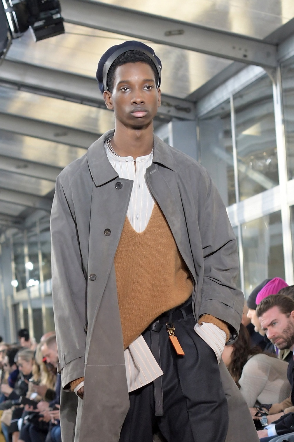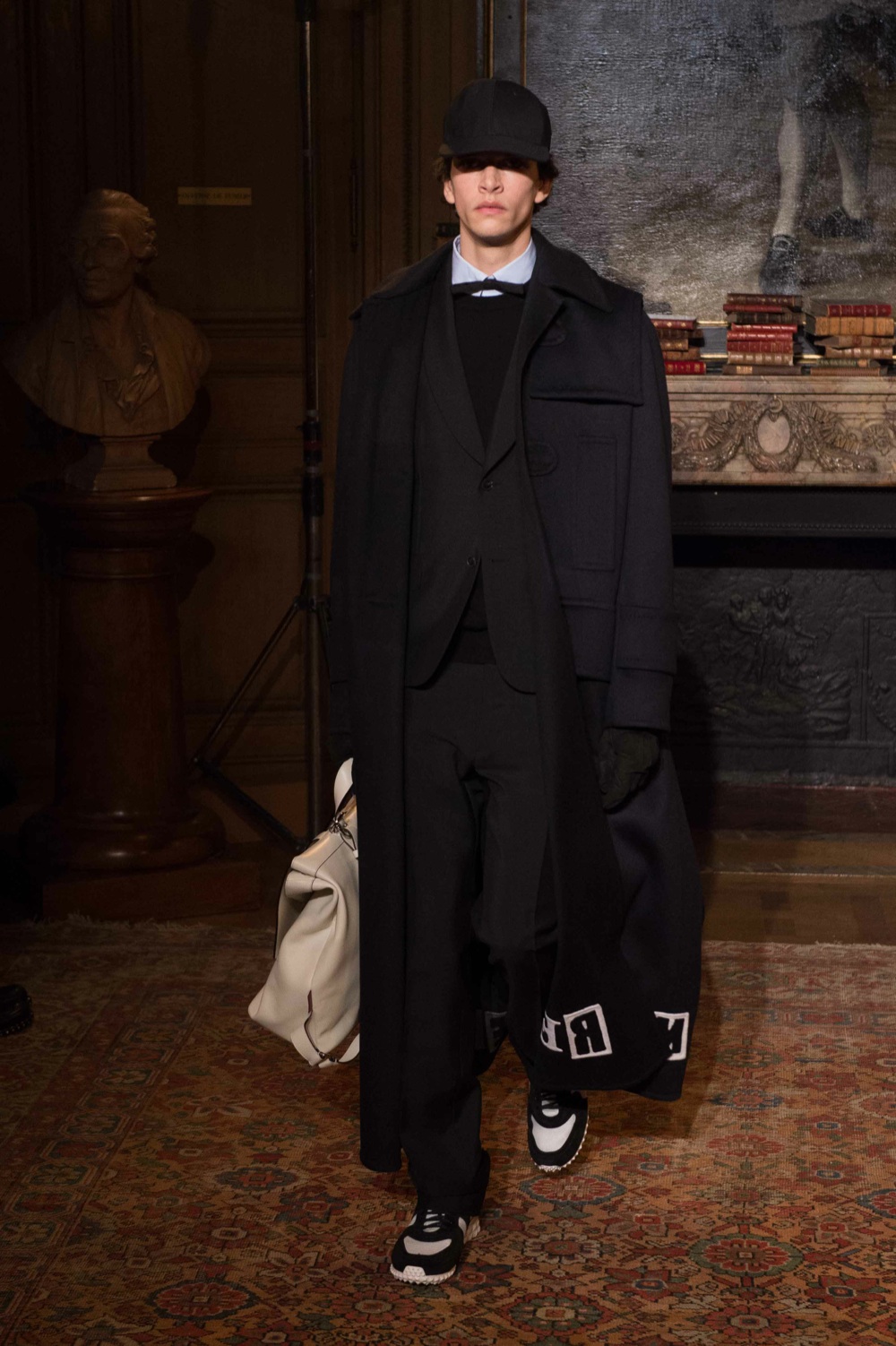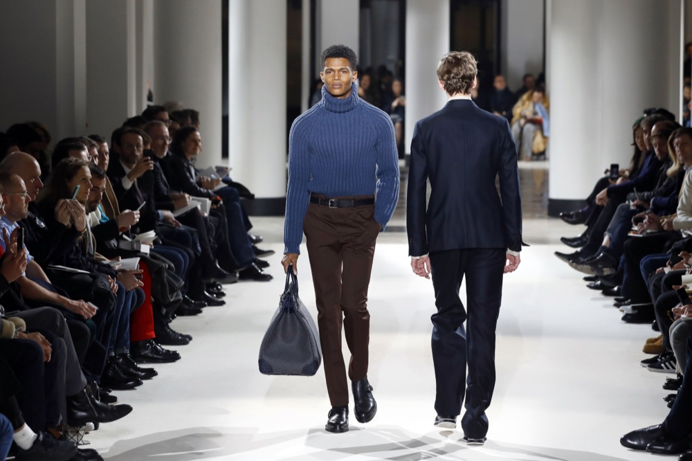Véronique Nichanian, il talento femminile dietro all’universo maschile di Hérmes, definisce il suo show parigini “Rock-mantic”. Una forma di comunicazione più libera di quello che è la mascolinità classica. Rock sono i giubbotti in pelle con foderla in shearling, i boots militari con lacci a contrasto, i pantaloni in pelle attillati e i cappotti che collassano sulle spalle abbracciati da ampi marsupi tracolla tanto cari alla maison. Romantic, invece, i doppipetto con chiusure oblique, voluminosi maglioni a collo alto, pantaloni rilassati e completi in luccicante velluto. Nessun urlo di stupore, ma la certezza di capi che saranno per sempre.