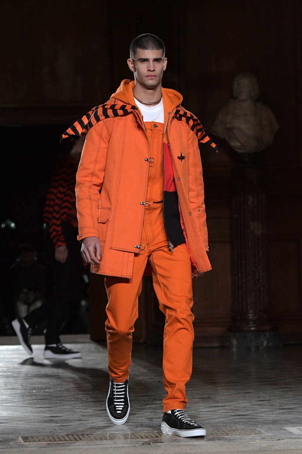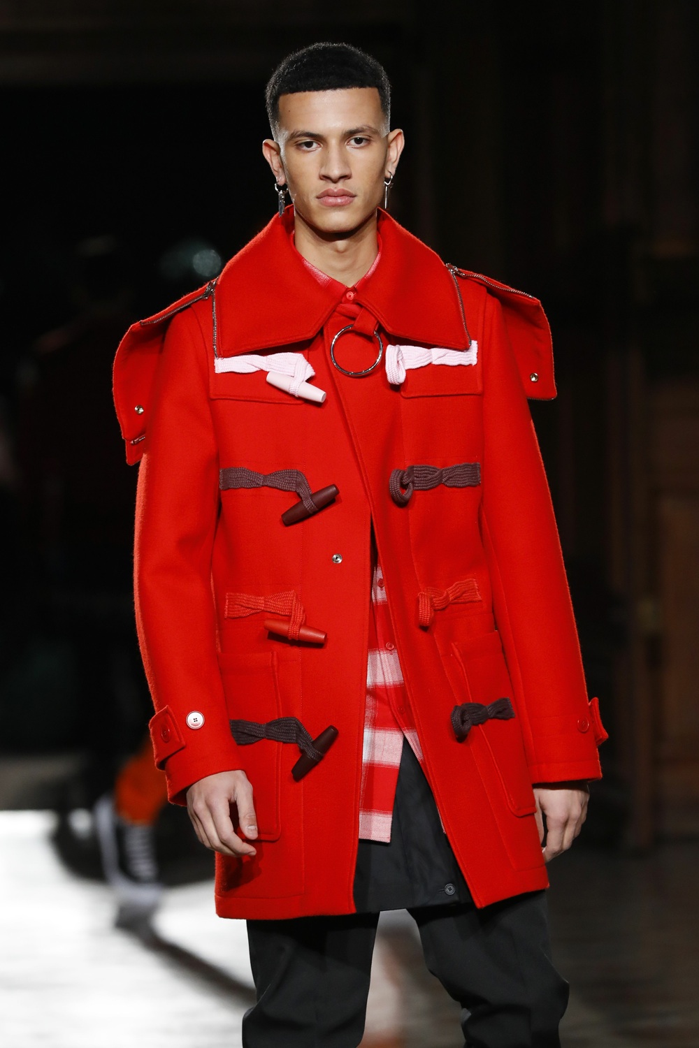 Ma se le collezioni Valentino e Fendi, Louis Vuitton e Balenciaga dichiarano a gran voce slogan, maxiloghi o strilli da copertina ecco che la prima parola di Lanvin è “NIENTE” stampato in bold su una sciarpa rossa. Niente, dice Lucas Ossendrijver, direttore artistico del menswear della maison. Nessuna collaborazione, nessun logo, nessuno slogan. La sua attenzione è solo sulla costruzione e sulle proporzioni dei capi. È li che vuole portare l’attenzione dello spettatore. Sugli elementi chiave del guardaroba maschile, camicie a quadri, giacche a vento over, dettagli mariniere o chinos, cappotti over con tagli laser e inserti in lana, giacconi da trekking, t-shirt tagliate di sbieco. Il tutto è stato rielaborati, arricchito e sublimato, senza mai diventare oggetti troppo preziosi. Perché nel nuovo guardaroba di Lanvin il lusso non è nella decorazione ma nella semplicità.