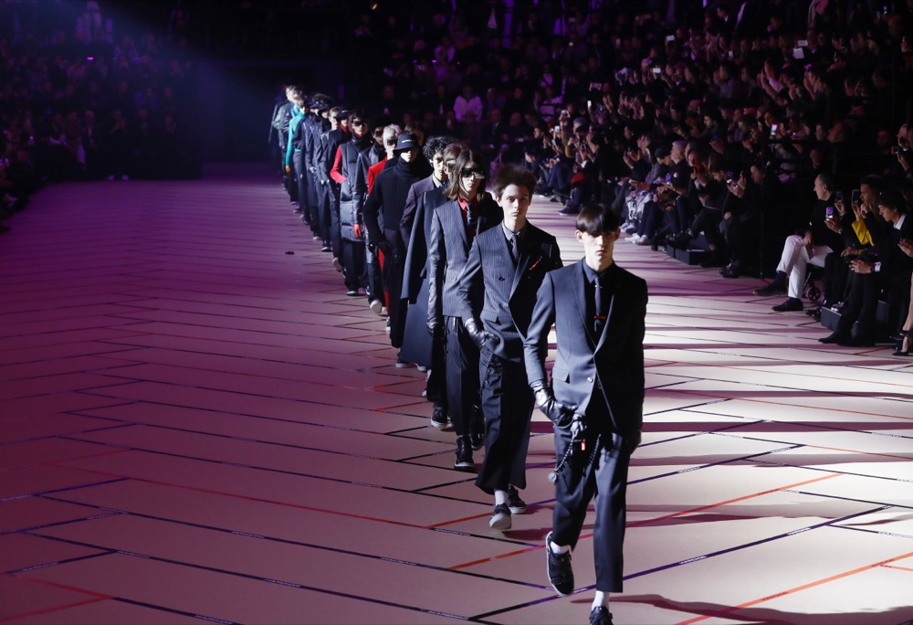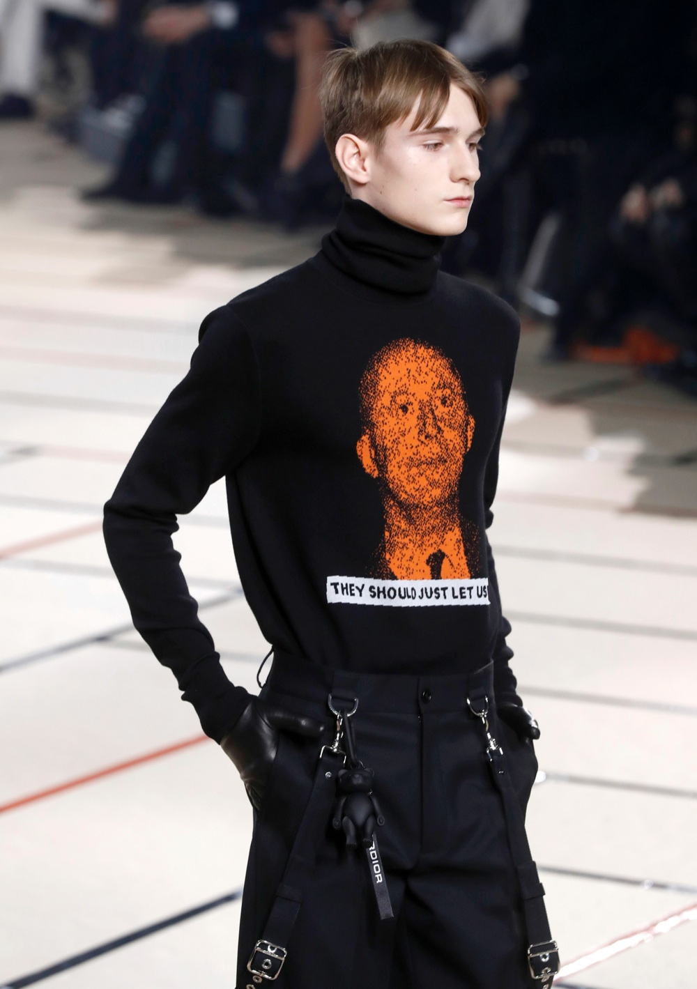 Si oppone a tutto quello che è stato detto prima di lui. Kris Van Assche è dell’idea che i giovani non siano solo alla ricerca di capispalla dai fit over, comfortable, denim e sneaker, felpe e bomber oversize. L’idea che non siano più alla ricerca di abiti sartoriali è un falso. Il problema, secondo il designer e direttore artistico di Dior Homme, è che nessuno gli ha mai dato il guisto tailoring. Ora, la sfilata sembra un rave party koreano. Occhiali over con lenti a specchio, workwear pants con sneaker e calze bianche, fit aderenti, maniche a tre quarti e guanti di pelle. Dal catwalk alle felpe, fino ai berretti e ai pull verde acido, il nuovo hashtag è #HarDior.