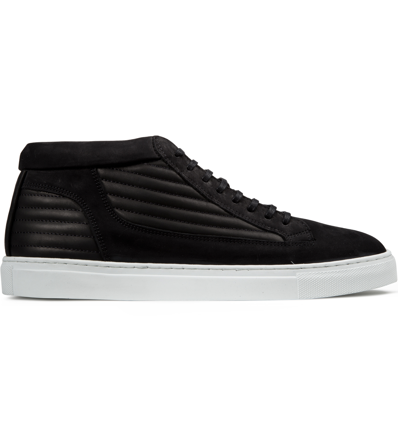 Senza stringhe o con stampa camouflage. Le sneaker nere sono un passepartout. Da osare anche con il black tie.