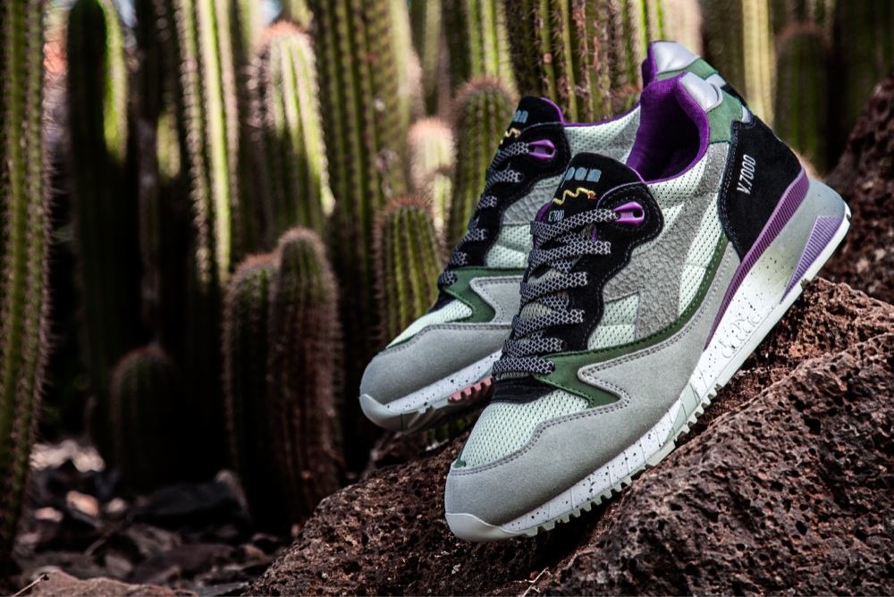 Anche Diadora celebra un anniversario, il 15° di Sneaker Freaker, il magazine australiano dedicato al mondo delle sneakers. E per l’occasione ecco la versione “Taipan” dell’iconica scarpa sportswear, la V7000. A ispirare questa limited edition è il serpente australiano (letale) taipan. È così che i materiali come il suede sabbiato e il nabuk verde oliva, gli inserti riflettenti in 3M e i dettagli viola veleno lo rendono un modello forte e grintoso. Le intersuole sono decorate con un effetto sfumato, dal centro fino alla parte posteriore. La texture della tomaia effetto “pelle di serpente” accentua ancora di più la sua anima “reptile”. Il logo customizzato è un altro elemento distintivo: Sneaker Freaker ha rielaborato la linguetta della scarpa sostituendo il classico logo Diadora con la scritta Taipan e un serpente dorato impresso sul suede nero. Basta girare la scarpa e, sulla suola, ecco apparire due denti aguzzi rosa. Il packaging customizzato con il serpente è il tocco finale di stile di questa memorabile collaborazione venduta in Europa da Foot Locker.