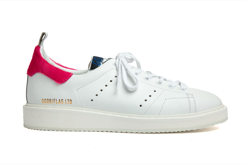 È in vendita da fine gennaio poi la capsule “Flag Limited Edition” di Golden Goose Deluxe Brand dedicata ai flagship store del marchio. La collezione, che fa parte della ss17, è composta da otto sneakers, Starter e Superstar, modelli iconici del brand, declinati entrambi in quattro varianti. Una palette colori che spazia dal lime al rosa, al purple con dettagli fluo e zebrati. Cavallino e dettagli fluo per il modello superstar. Il modello starter è invece proposto in calf leather bianca con lacci a contrasto e talloncino pony.