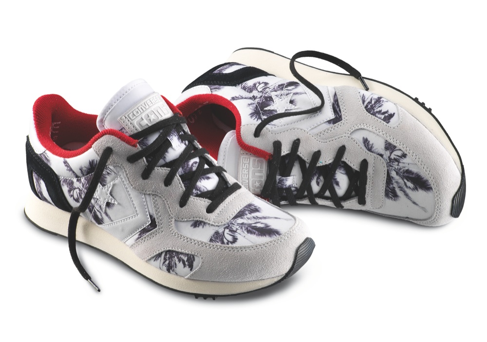 Asics in occasione del 25° anniversario della Gel Lyte III collabora con Sneaker Mita per realizzare una limited edition di soli 1.990 pezzi. La tomaia del modello icona del brand giapponese che reinterpreta i modelli heritage degli Anni Ottanta e Novanta, è costruita interamente in camoscio. Blu il colore dominante, sfumato su punta e tallone, e acceso da dettagli rosso fuoco. Anche Converse si ispira a un modello del passato peri rieditare la Auckland Racer lanciata per la prima volta negli Anni 70: le tomaie sono dipinte come quadri Hawaiani con fiori e fantasie tropicali.