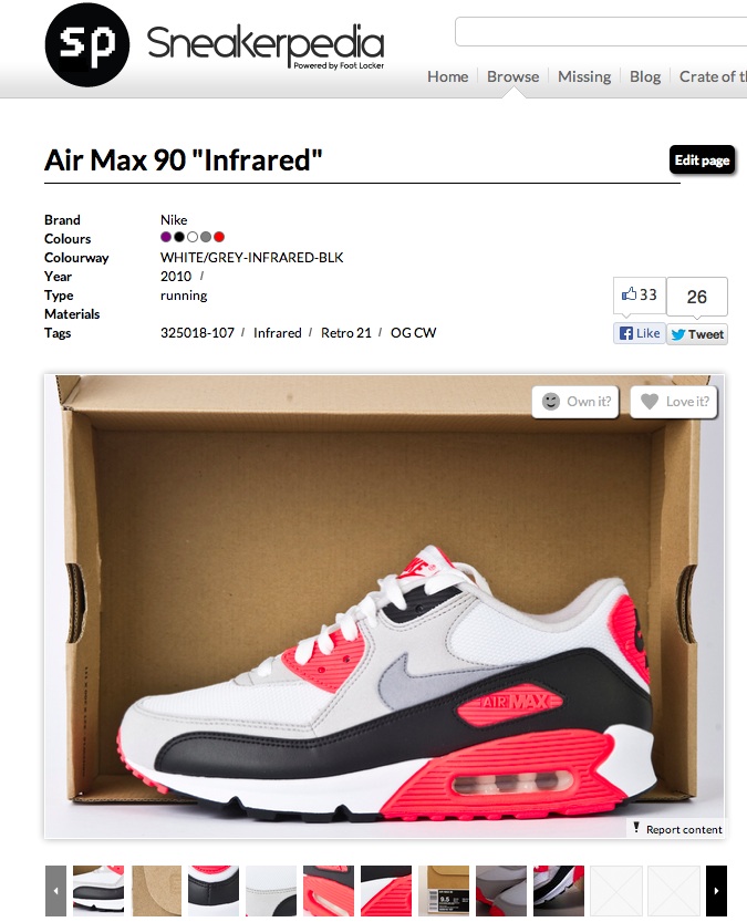 In questi due anni, Sneakerpedia ha identificato alcuni dei modelli più significativi del mondo sneakers, come la più posseduta (la Nike Air Max 90 Infrared), con il doppio dei proprietari rispetto la seconda classificata, la Air Jordan III True Blue, la più amata (la Nike Air Max 1), la più modaiola, la più costosa e via dicendo.